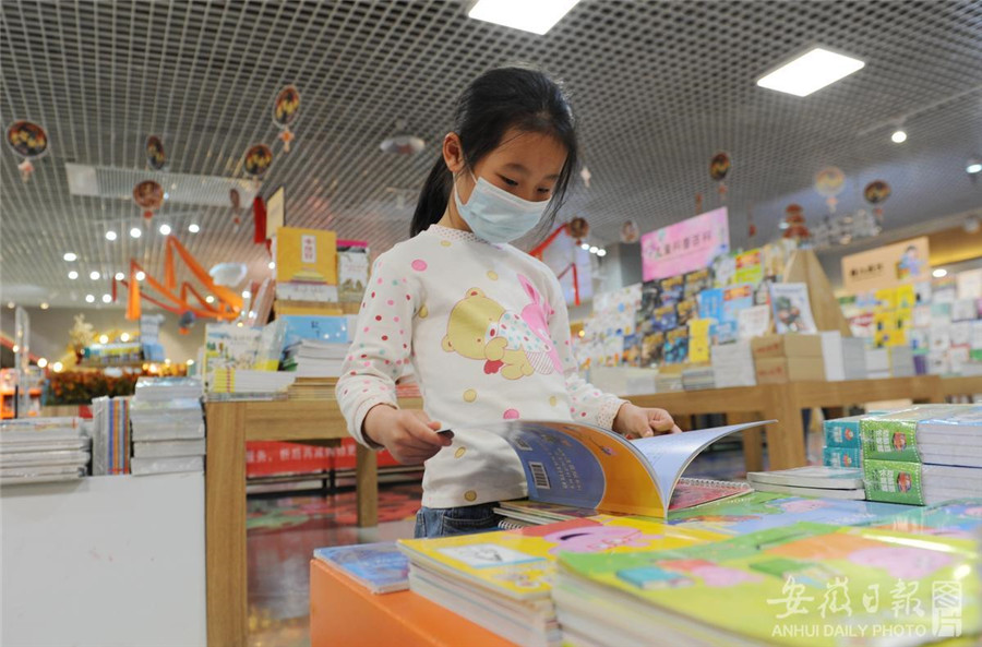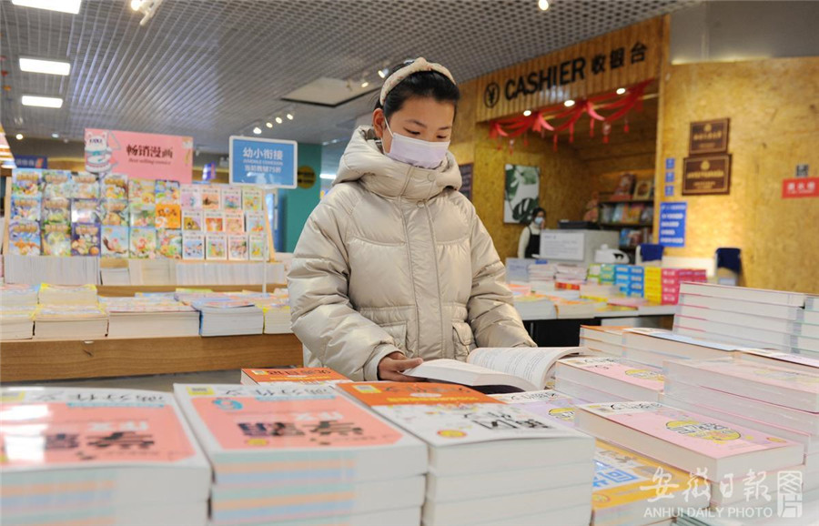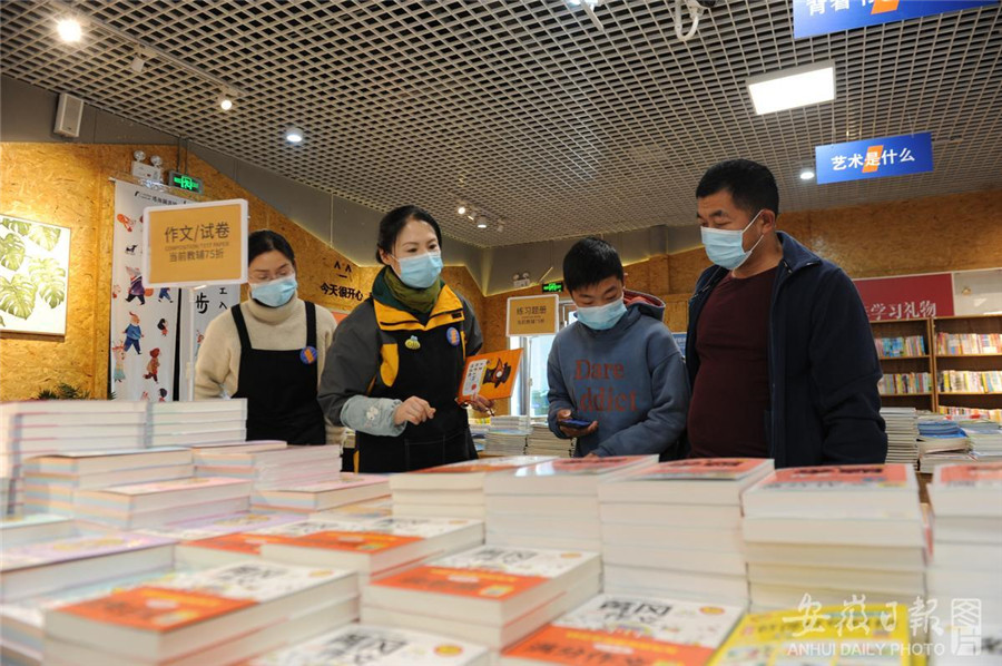 2月21日,在合肥市瑶海图书城,学生和家长在选购图书。开学将至,合肥市各大书店迎来图书销售高峰,许多学生和家长来到书店购买教辅书籍和学习用品,迎接新学期的到来。通讯员 熊璟怡 摄