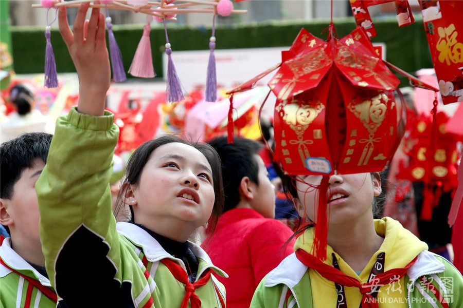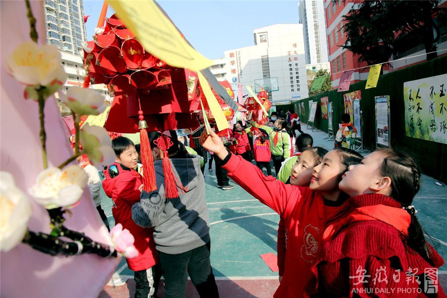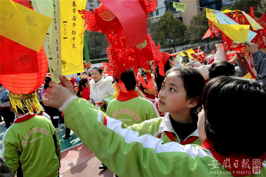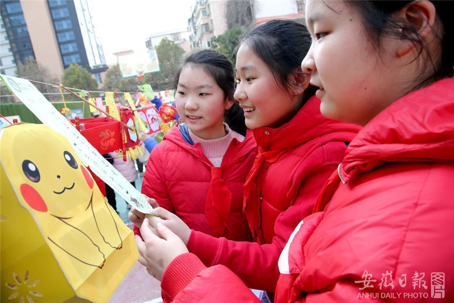 2月23日,淮北市第三实验小学举行师生和乐猜灯谜活动,弘扬传统文化,庆祝元宵佳节。通讯员 于金龙 摄