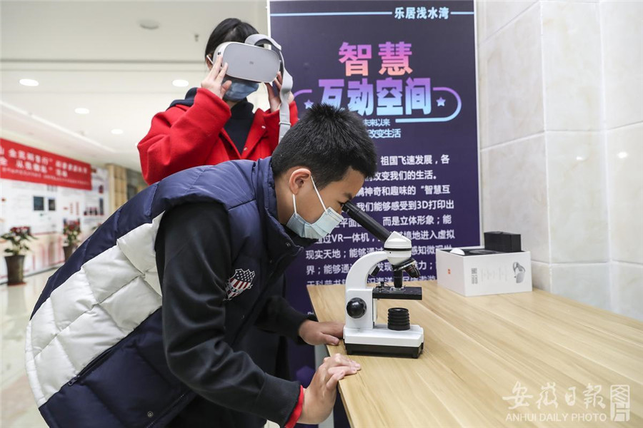 2月28日,合肥市蜀山区科协在荷叶地街道浅水湾社区开展“魅力蜀山 全民科普行”活动。现场,青少年通过实际操作体验,了解科普知识,开拓视野。记者 范柏文 摄