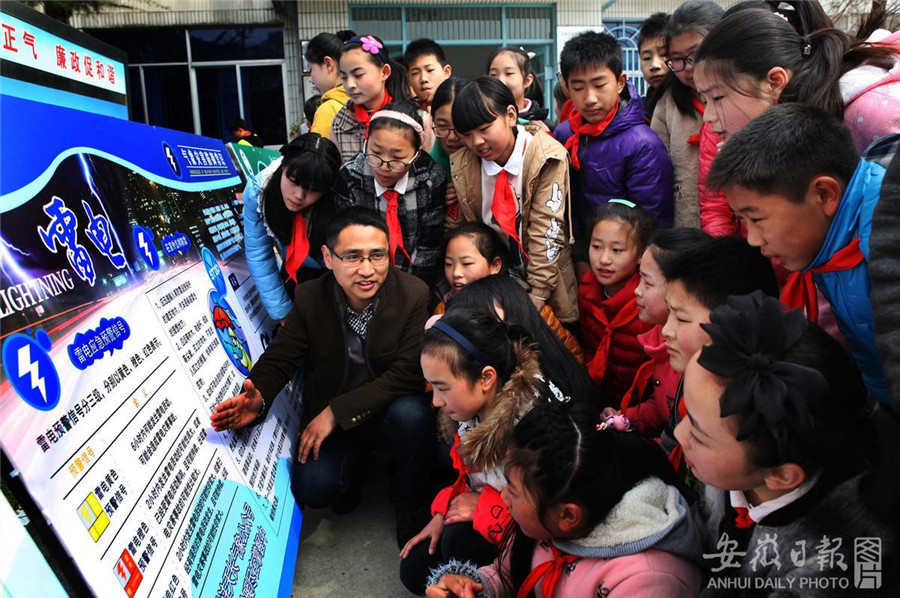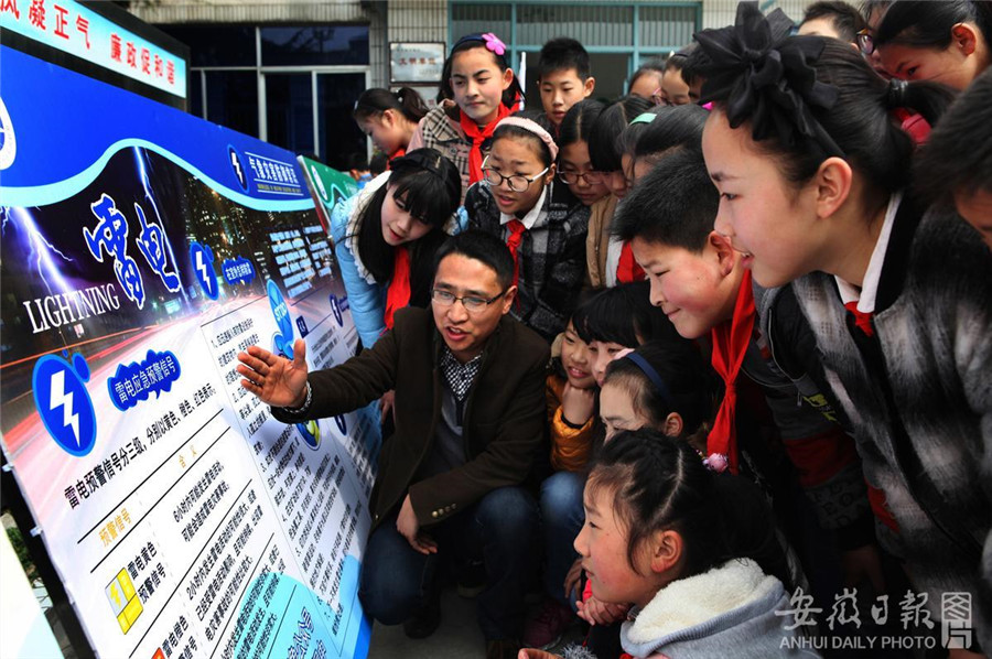 3月22日,天长市气象局在该市第一小学开展气象科普知识进校园活动。孩子们通过宣传展板、气象手册、现场教学,知道了气温、气压、风速、风向、降水测量、人工增雨等常识,了解了气象工作对提高防灾抗灾能力、维护人民生命财产安全的重要意义。通讯员 李炳旺 摄