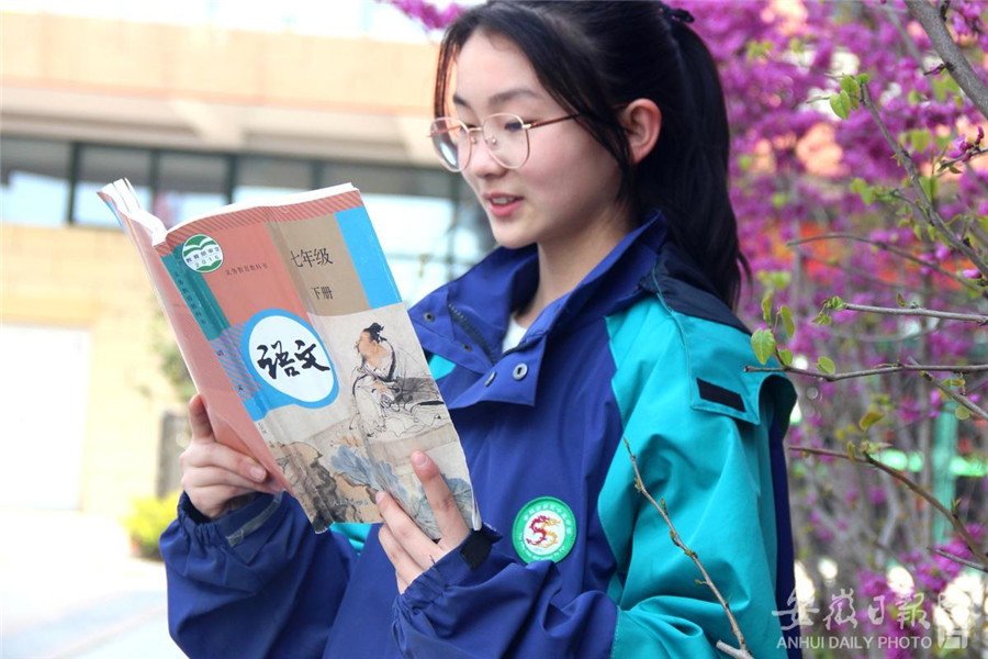 春意渐浓,百花争艳。在合肥市第五十五中学教育集团东校的校园里,春意盎然,生机勃勃,紫荆花下,读书角里,悠长的走廊上,处处是学子们读书学习的身影。