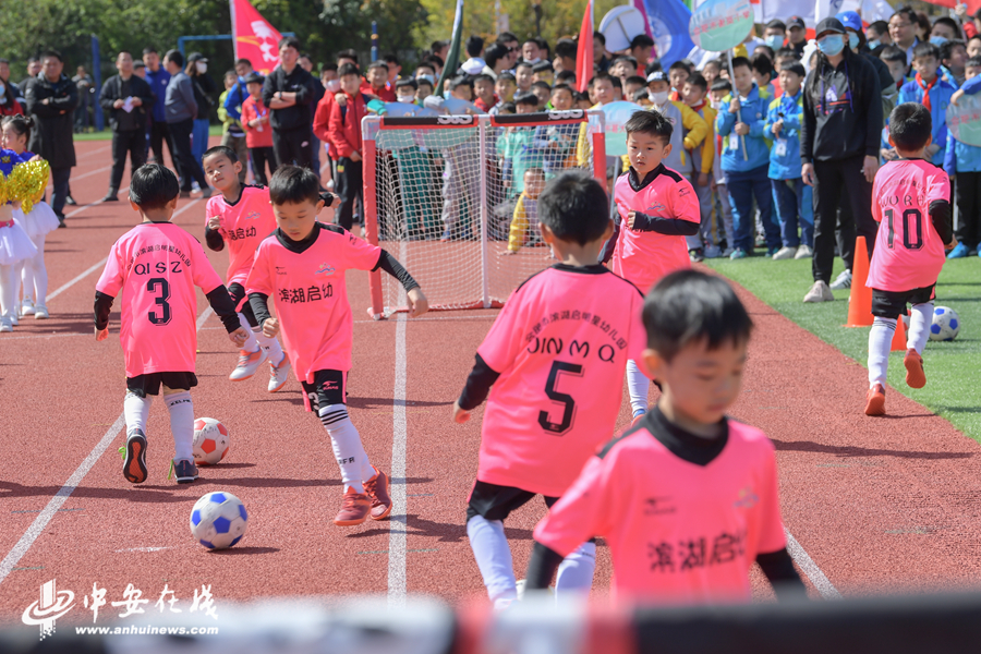 中安在线、中安新闻客户端讯 4月10日,2021年合肥市包河区校园足球联赛全面启动,本届校园足球赛在全省首次创新联赛形式,从幼儿组足球游戏起始,到小学、初中、高中各学段比赛,共有55所中小学,11所幼儿园,140支队伍,2600余名运动员参赛。