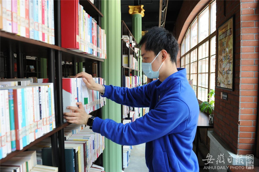 4月23日,合肥市瑶海区花冲公园,游客在悦书房阅读图书。近日,合肥市瑶海区花冲公园里的悦书房免费向社会开放,游客可在其中阅读、休憩,成为市民新的学习休闲“打卡地”。通讯员 熊璟怡 摄