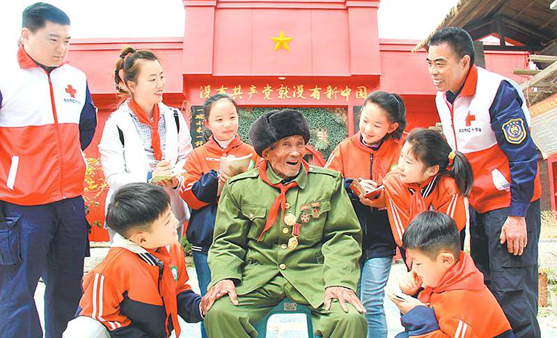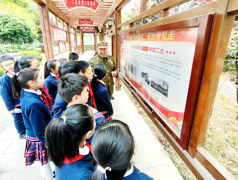 近日,在滁州市南谯区乌衣镇锦绣湖社区,86岁抗美援朝老战士结合自身战斗经历为孩子们上了一堂生动的党史、军史学习教育课。通讯员 董超 申思 摄