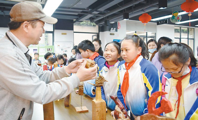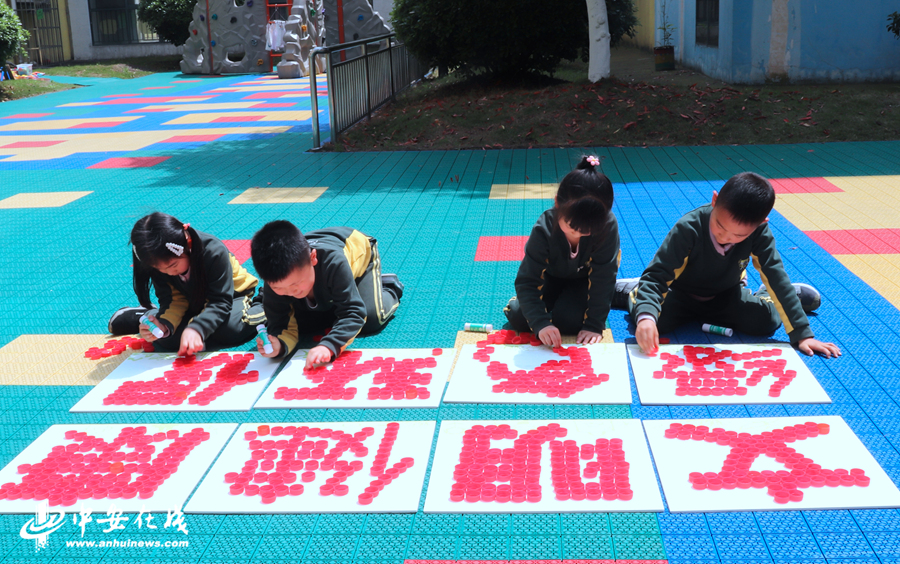 用收集的废弃瓶盖拼出“文明健康 绿色环保”