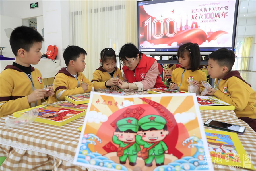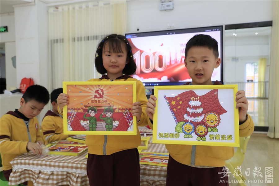 为喜迎建党100周年,4月28日下午,合肥市庐阳区林店街道菱湖社区联合创和幼教名门华府幼儿园开展了一场党史创意“纽扣画”活动。社区志愿者给孩子们讲解纽扣画的内容和制作流程,旨在培养和增进孩子们对党和祖国的崇敬之情。通讯员 赵明 摄