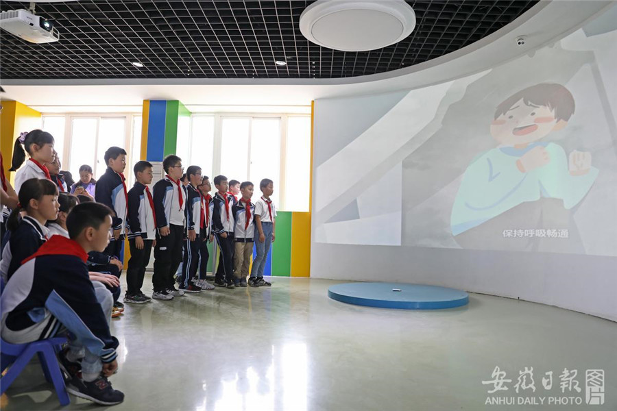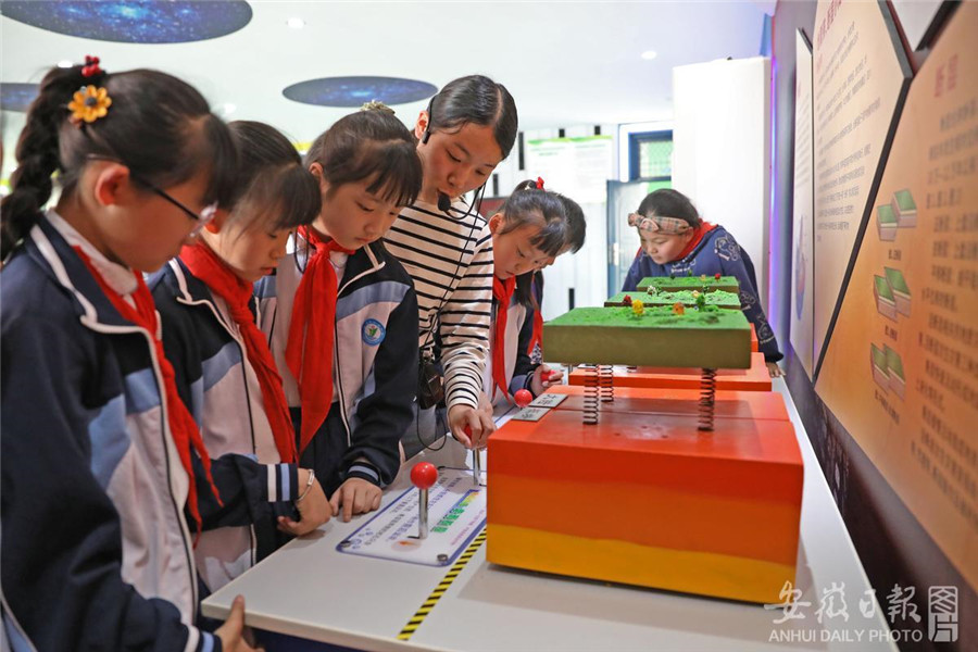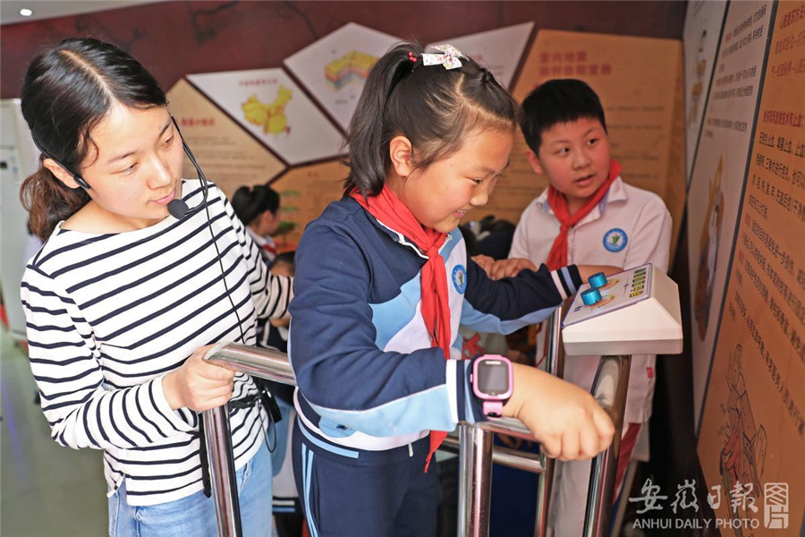 5月7日,全椒县江海小学同学们走进位于青少年学生校外活动中心的地震科普馆,体验地震模拟设备,观看防震救护视频,学习防灾减灾知识,迎接全国防灾减灾日的到来。(通讯员 禹强云 摄)