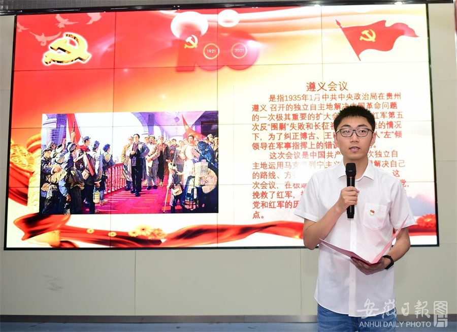 近日,在合肥市逍遥津小学金都校区,学生展示社区党委赠送的红色邮票。为庆祝中国共产党建党100周年,引导学生学党史、感党恩、跟党走,当日,合肥市庐阳区杏花村街道金都社区联合逍遥津小学金都校区开展“红色邮票进校园”活动,社区党委为学生代表们每人赠送了两版见证我党历史发展的红色邮票,社区党员志愿者、新乡贤为学生分享红色邮票中的党史故事,让学生感受幸福生活的来之不易,珍惜美好生活,努力学习报效祖国。