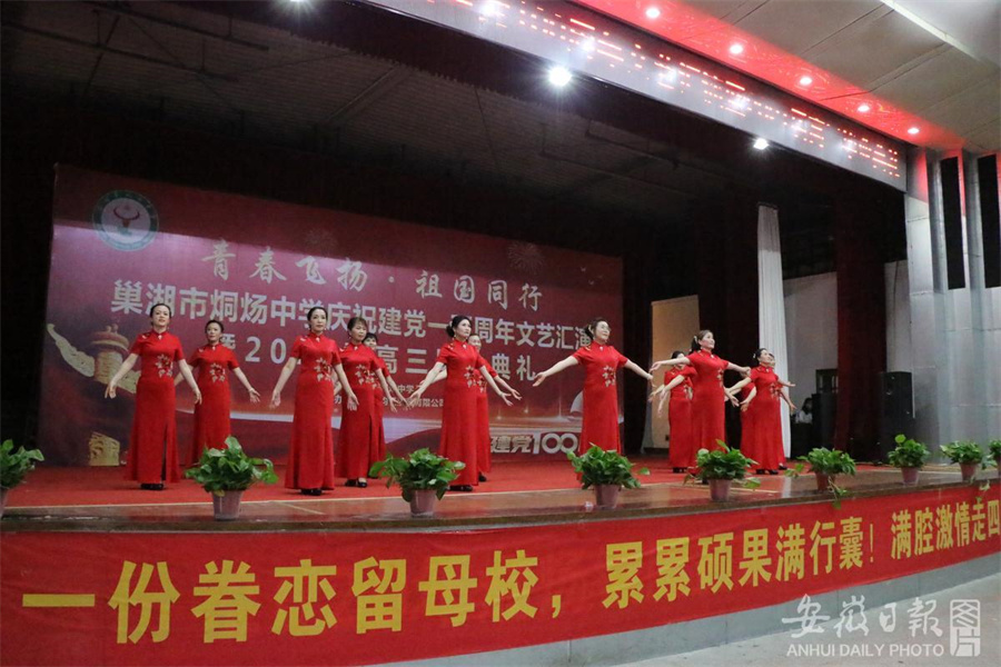 6月18日,安徽省示范高中烔炀中学在学校礼堂进行庆祝建党一百周年文艺汇演暨2021届毕业典礼。通讯员 曹永龙摄