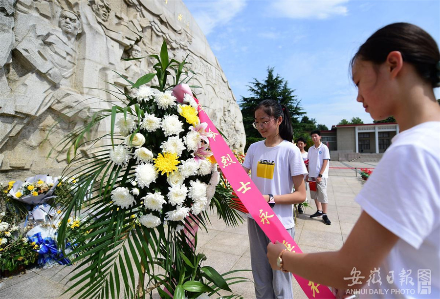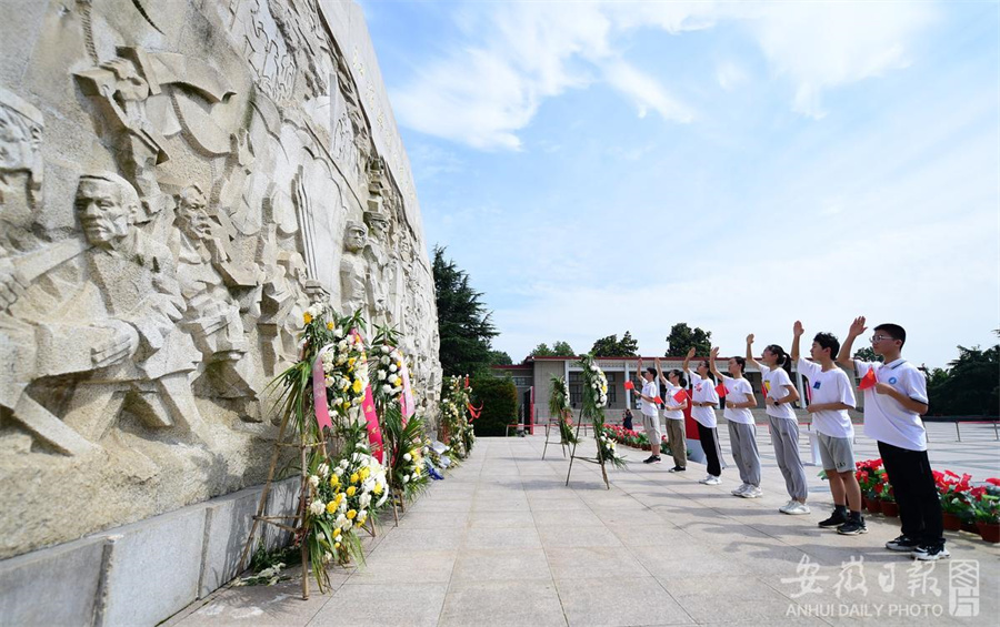 7月11日,合肥市庐阳区大杨镇清源社区党委联合合肥四十五中学橡树湾校区716中队开展“缅怀革命先烈 传承红色基因”活动,组织学生来到合肥市大蜀山烈士陵园,缅怀革命先烈,了解先烈的英雄故事,传承红色基因。本报通讯员 葛传红 吴斌 摄