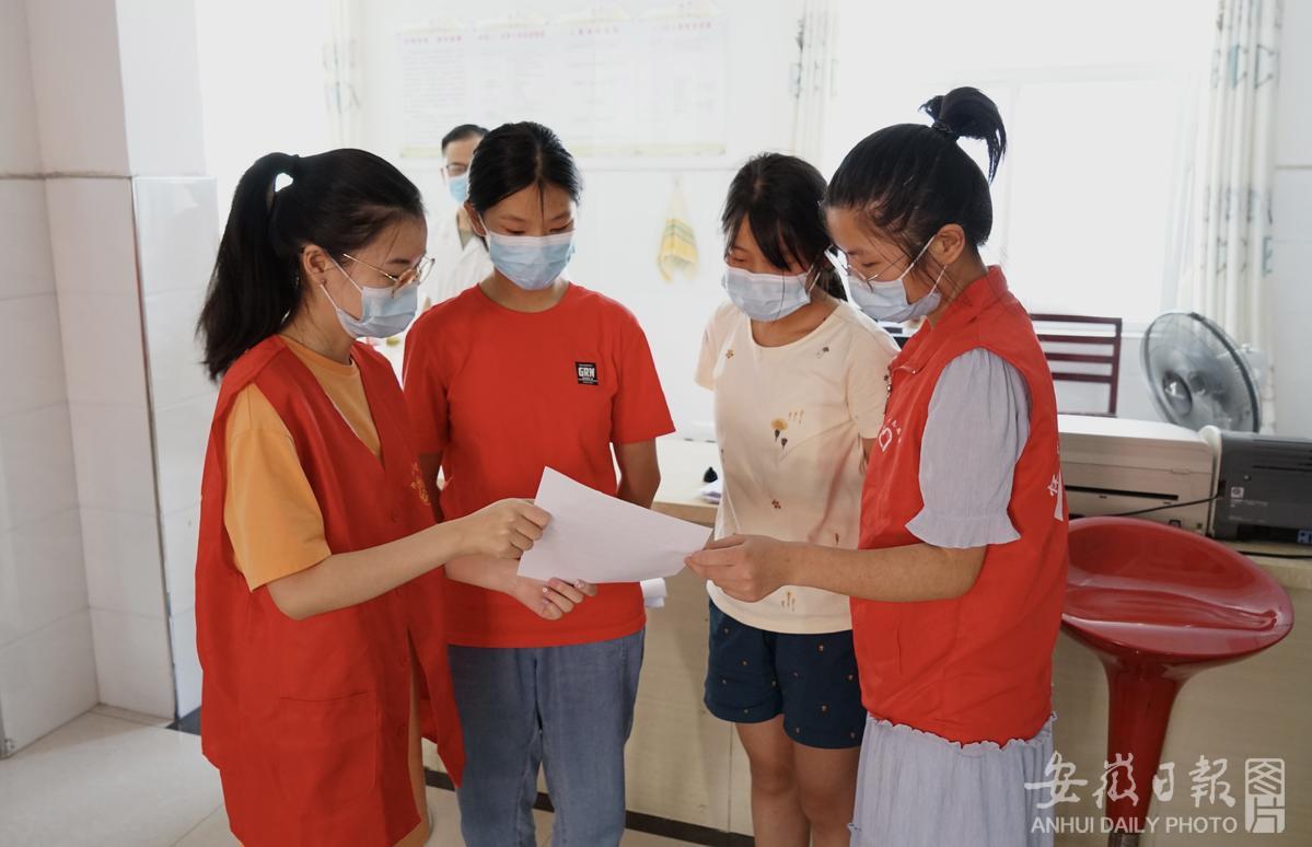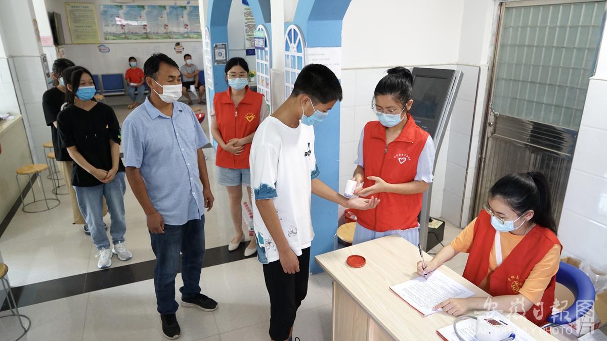 8月6日,怀宁县平山镇48名暑期在家大学生主动参与疫情防控进来,协助卫生院做好宣传咨询、人员分流引导、维持现场秩序、登记、留观等工作,提高了疫苗接种效率,深受群众欢迎。通讯员 檀志扬 杨兰兰 摄