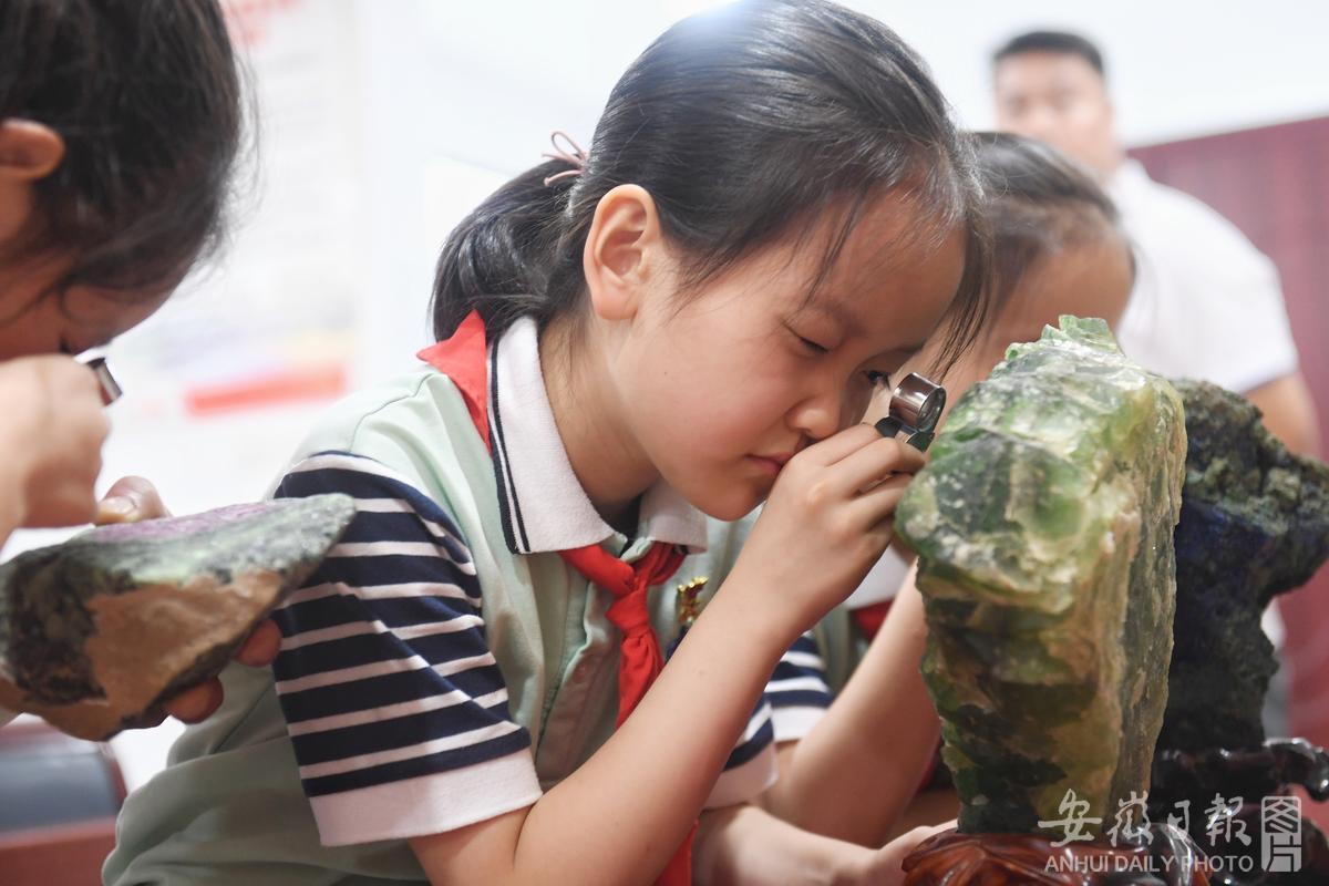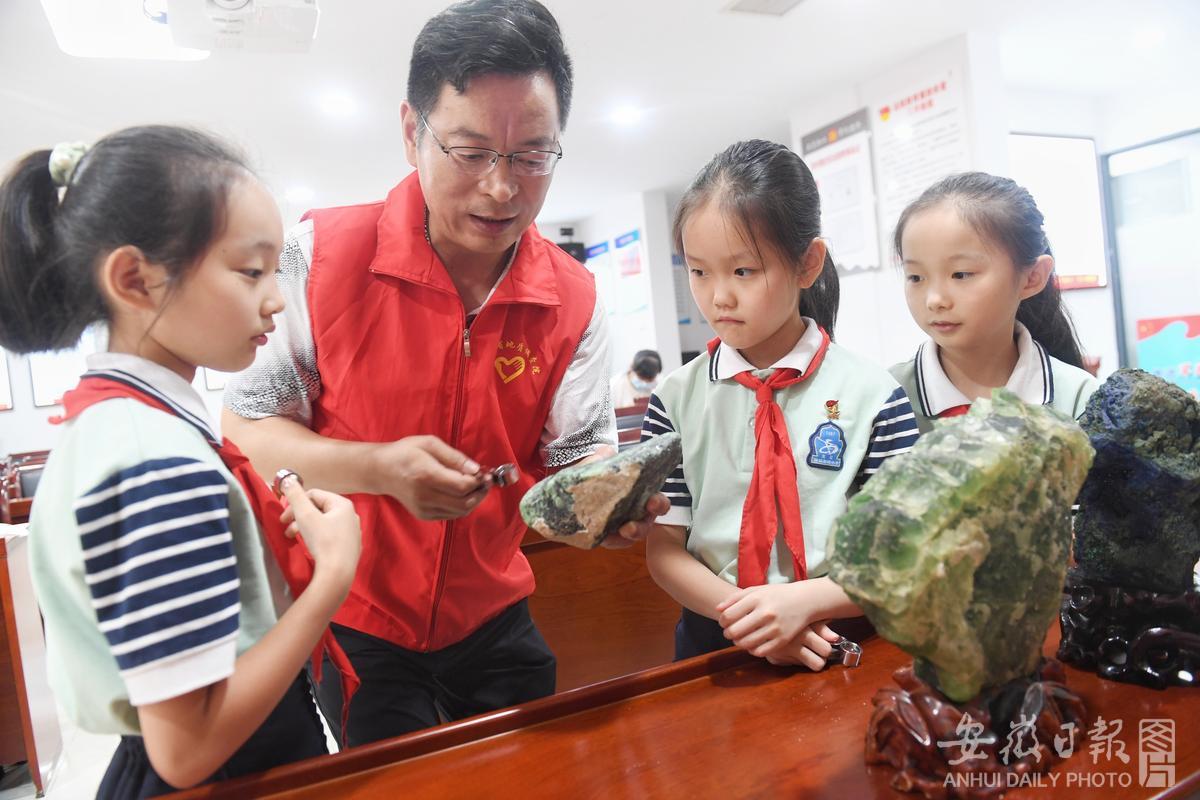8月4日,合肥市西园新村小学南校的学生们,在浅水湾社区科普志愿者引导下,做科学课堂实验、学地质基本知识,提升科学素养。暑期内,合肥市在全市范围内推广社区与丰富多彩的志愿者课堂联动,让孩子们在家门口就可以免费参与科普、文体、艺术等兴趣课堂。记者 杨竹 摄