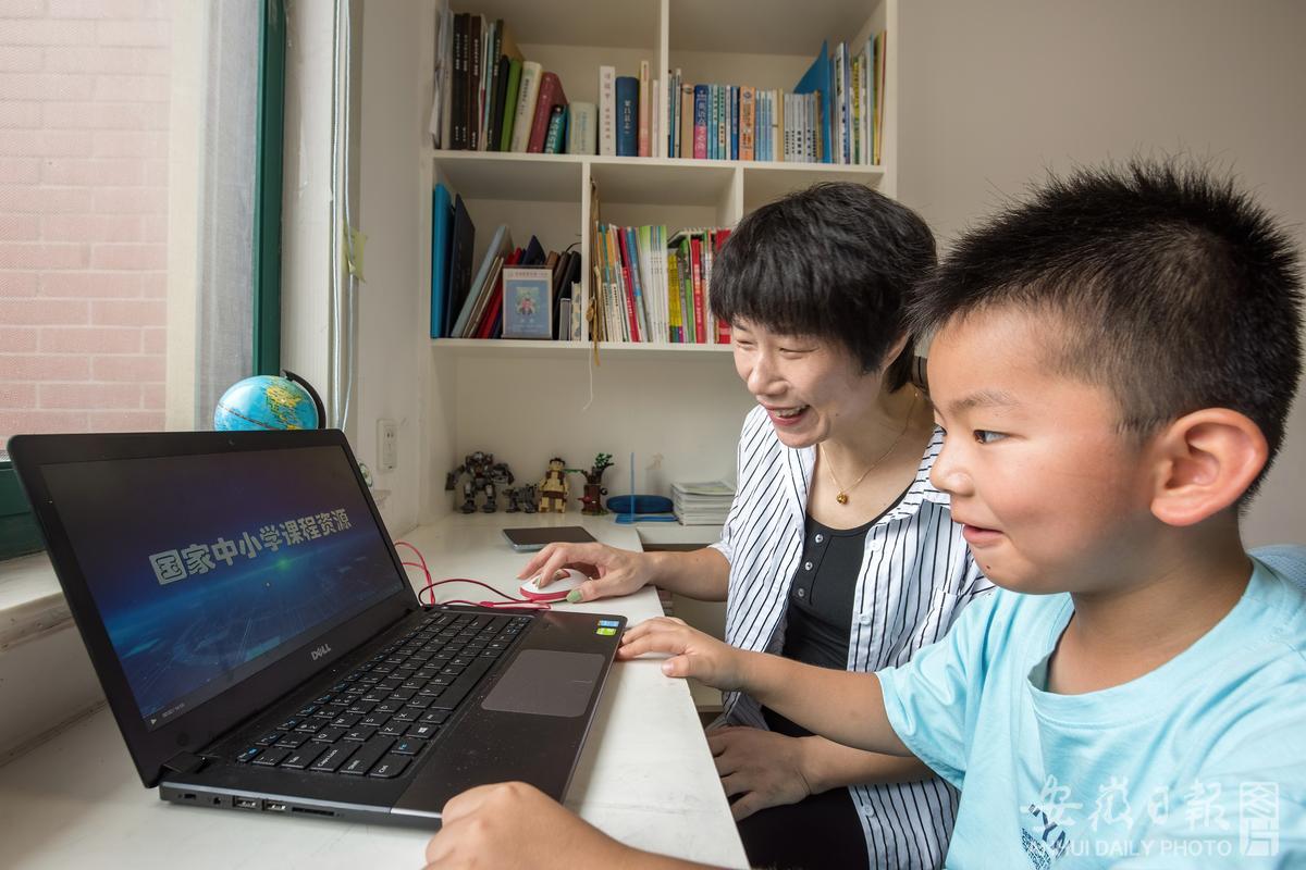 8月11日,芜湖市繁昌区繁阳镇城关一小教师在家访时指导学生登陆国家中小学网络云平台进行学习。日前,教育部针对疫情推出国家中小学网络云平台,小学、初中、高中的所有学科课程免费在线学习,有效减轻了义务教育阶段学生作业负担和校外培训负担。通讯员 肖本祥 摄