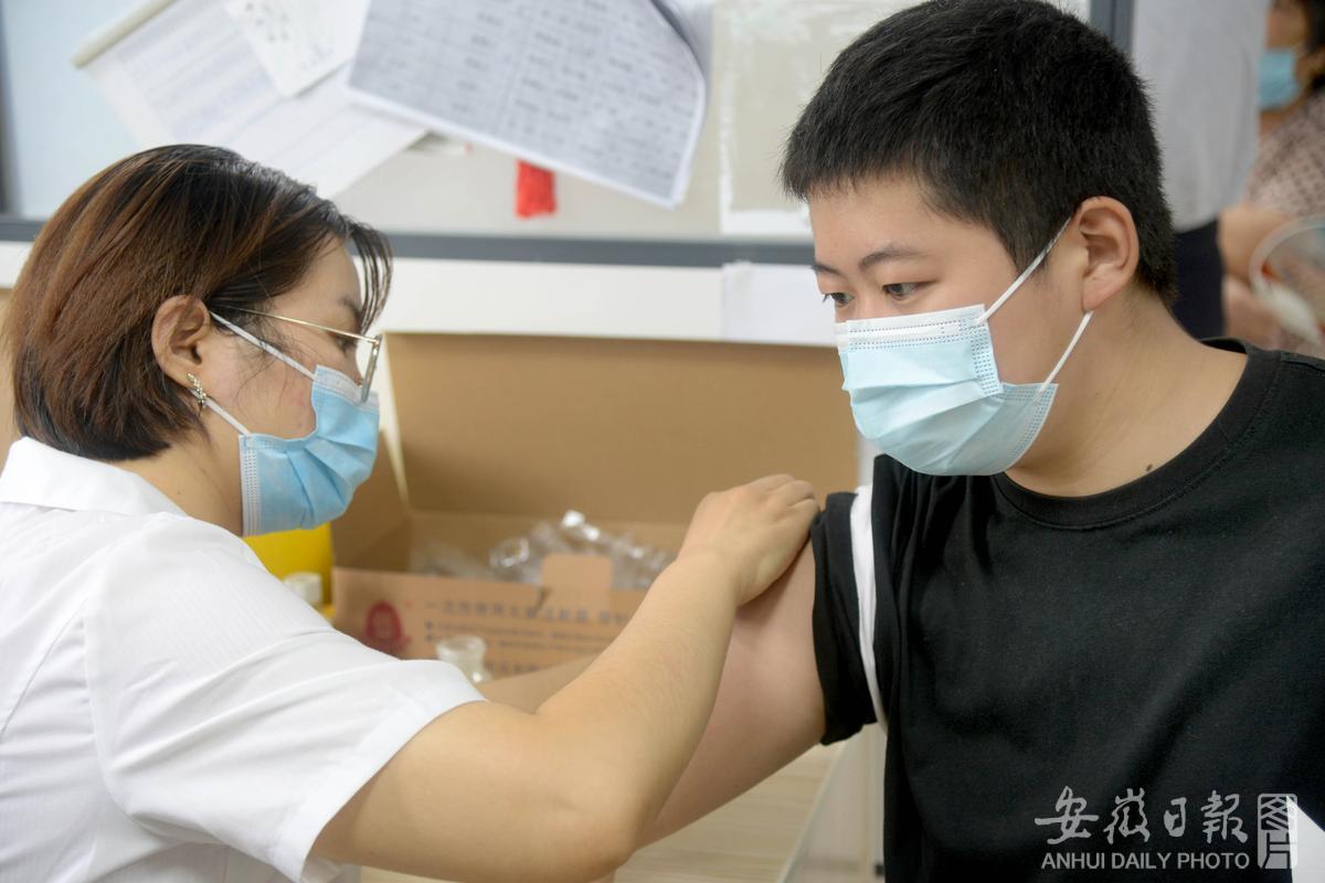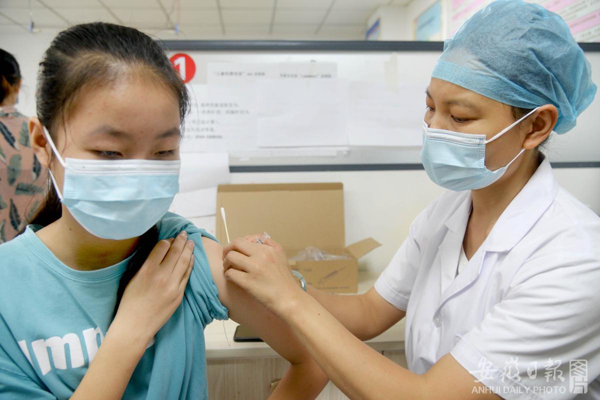 8月17日,六安市裕安区平桥乡卫生院接种点,一名学生在接种新冠疫苗。自7月中旬以来,该市积极采取各种保障措施安全有序做好12至17岁人群新冠疫苗免费接种服务工作顺利进行,接种过程家长或监护人全程陪同。通讯员 田凯平 摄