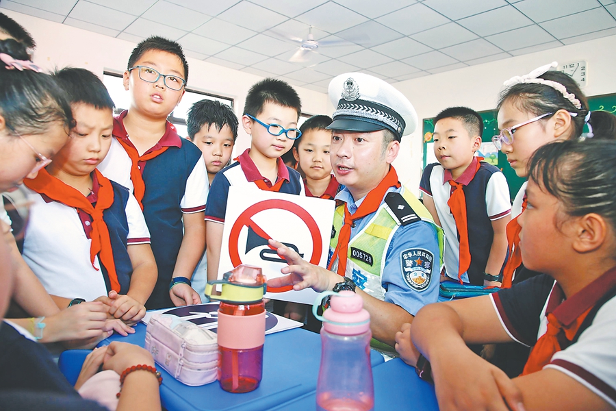 8月31日,合肥市公安局交警支队组织民警来到南门小学森林城校区,通过教育宣讲、情景互动等形式,在寓教于乐中传递交通安全知识。