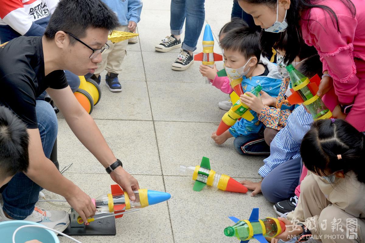 10月6日,六安市图书馆开展“中国梦·航天梦”火箭制作体验科普活动,邀请六安市裕安区航空航海模型协会志愿者,通过为小读者们讲解航海航空知识、指导他们用废旧饮料瓶制作简易火箭模型、进行室外放飞体验等形式,培养大家的动手动脑和科技创新能力,探索科学兴趣,丰富课余生活。通讯员 田凯平 摄