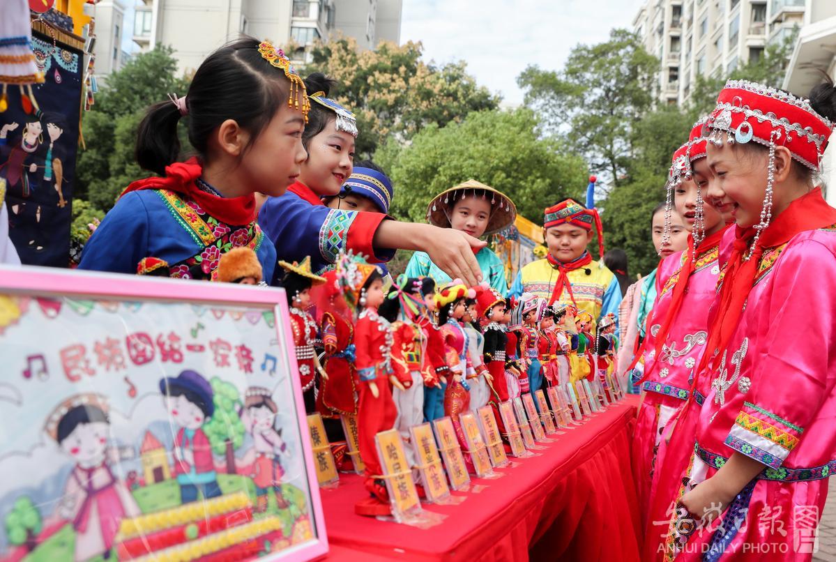 为迎接第72个中国少年先锋队建队日,10月12日,合肥市瑶海区元一名城小学开展“朵朵葵花心向党,民族团结一家亲”建队日主题活动。少先队员们身穿各具特色的民族服装,通过文化展示、民俗游戏、红歌“快闪”等多种形式,感受民族文化,增强文化自信,增进民族团结。