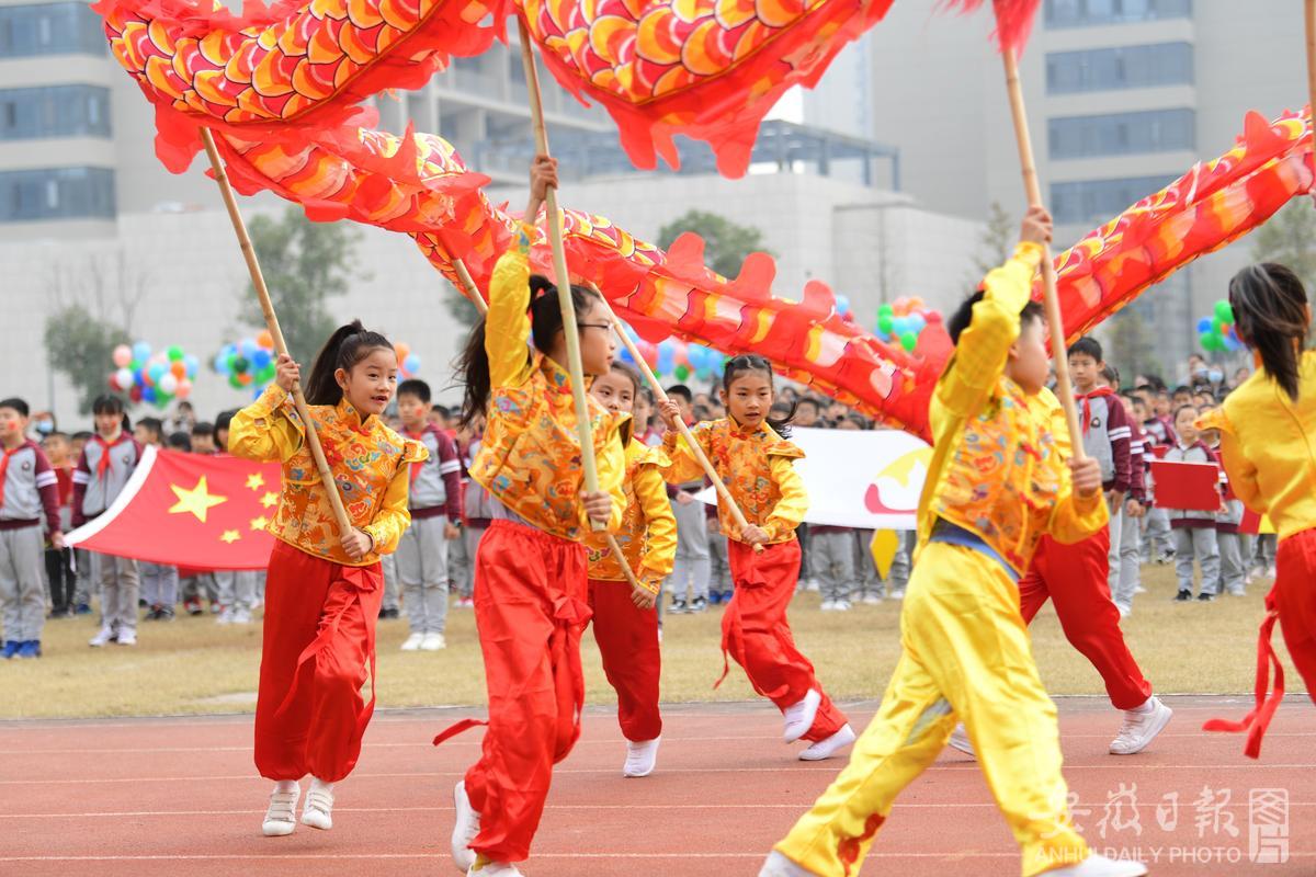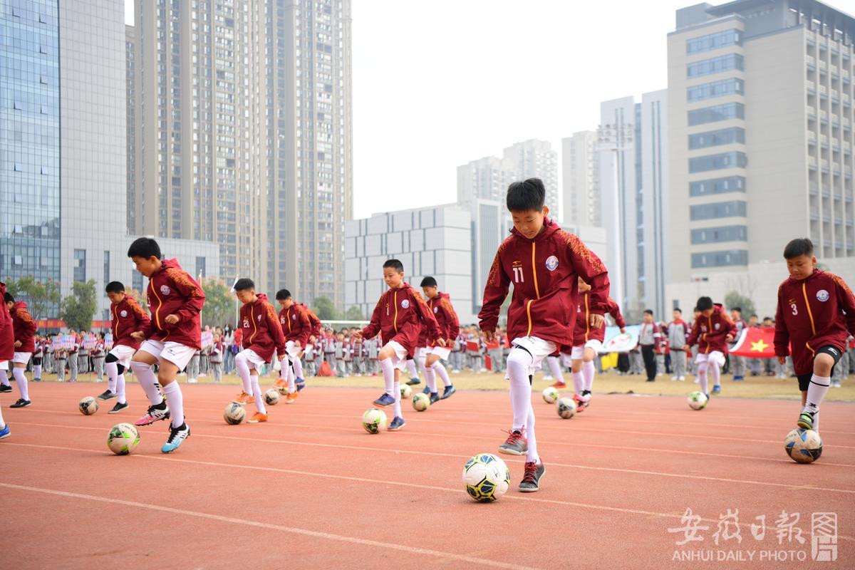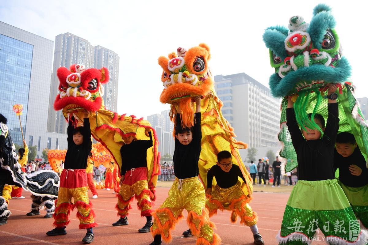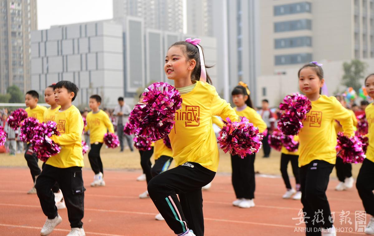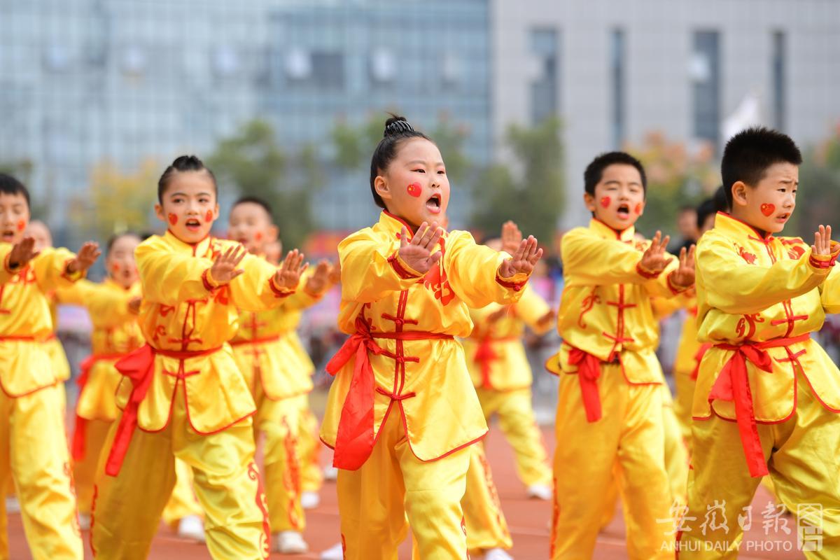 11月4日,合肥市和平小学运动会开幕式上,同学们正在进行啦啦操、舞狮、武术、管乐、田径、足球、篮球等社团展示。“双减”实施后,学校进一步加大运动、文化、科技等特色社团建设,以个性化课后延时服务和丰富多彩的社团活动促进学生身心健康发展。通讯员 蒋娟娟 摄