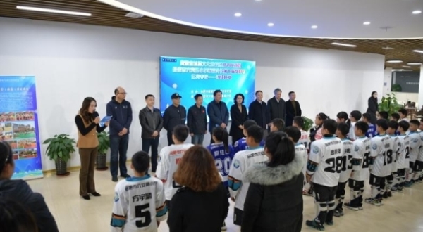 12月11日下午,安徽省冰雪文化进校园赠书仪式暨合肥市六安路小学翠微分校第七届学科节体育专场冰球比赛在安徽省运动促进健康中心进行。根据党中央国务院关于发展冰雪运动的总体部署和要求,加快发展青少年冰雪运动,大力普及冰雪文化,为北京冬奥会举办营造浓厚氛围,安徽省教育厅、安徽省体育局、合肥市教育、体育主管部门共同开展主题为“迎接北京冬奥会——冰雪知识宣传进校园”系列活动。