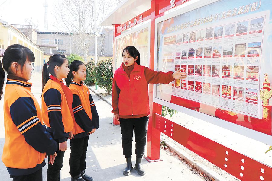 12月22日,亳州市谯城区牛集镇组织新时代文明实践志愿者走进安溜小学,开展“党史学习教育进校园 红色精神润童心”主题教育活动,让小学生从党的百年伟大奋斗历程中汲取奋进力量,让红色基因、革命薪火代代相传。