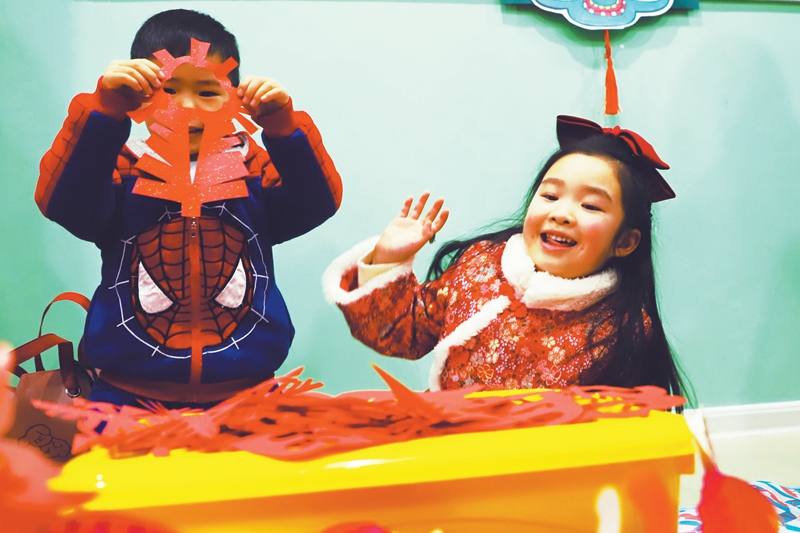 1月10日,铜陵市一幼儿园“体验民俗迎新年”活动现场。当日,孩子们体验了民俗大街、剪纸等活动,快乐迎接新年的到来。铜陵市开展系列民俗展演与互动活动,让市民在家门口就能体会到浓浓的年味,感受有趣的民俗。记者 杨竹 本报通讯员 张玲 摄