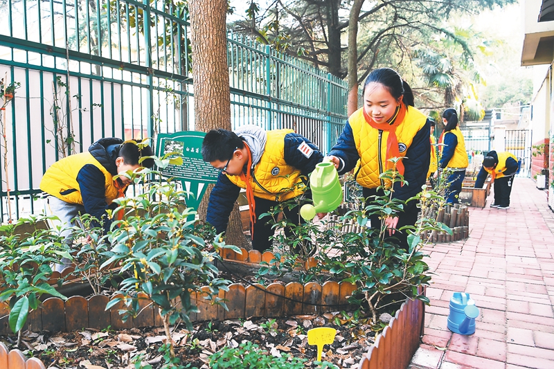 1月12日,合肥市西园新村小学北校的学生在进行校内劳动实践课程。该校以丰富多彩的劳动实践课程引导小学生德智体美劳全面发展,将劳动最光荣、劳动最崇高、劳动最伟大、劳动最美丽的“守纯”意识根植于孩子们的心灵,筑牢立德树人基础。 记者 杨竹 摄