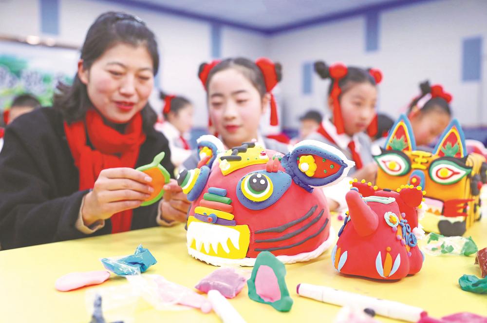 春节前,淮北市泉山路学校举办“创意萌虎迎新春”美育课堂手工创作活动,小学生在老师指导下各展才艺,喜迎虎年。本报通讯员 万善朝 摄