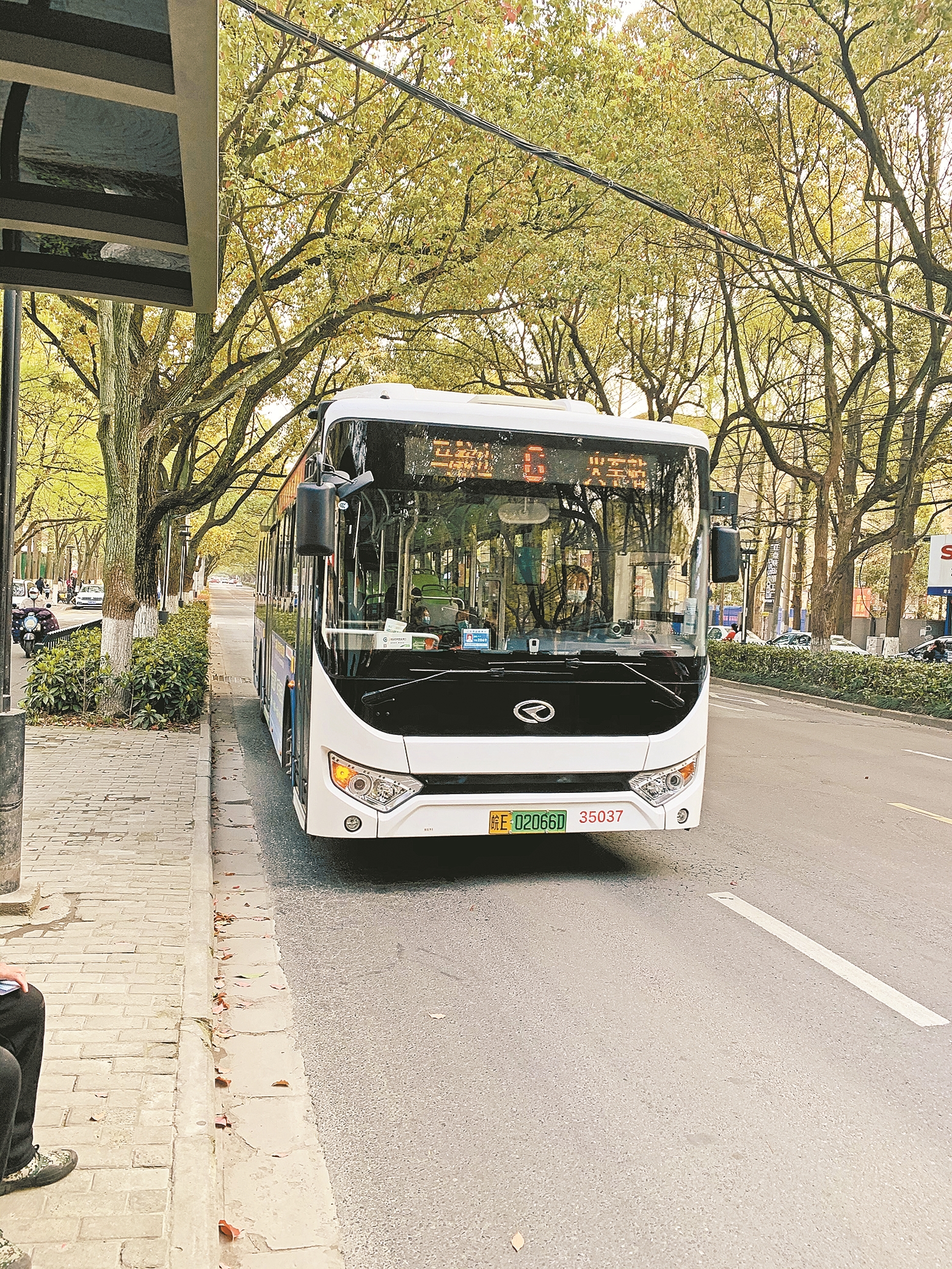 市区公交车有序复运 6路公交车平稳进站。记者 高莹 摄