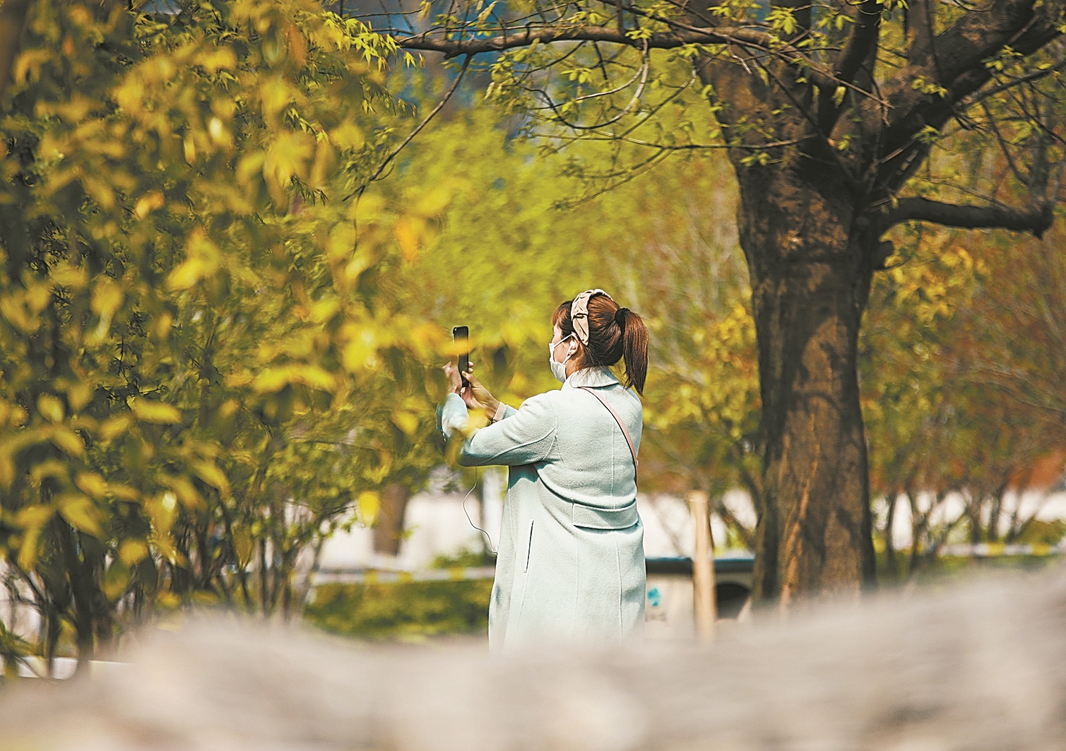 景区景点有序开放 游客在景点赏景拍照。 记者 邵纪明 摄