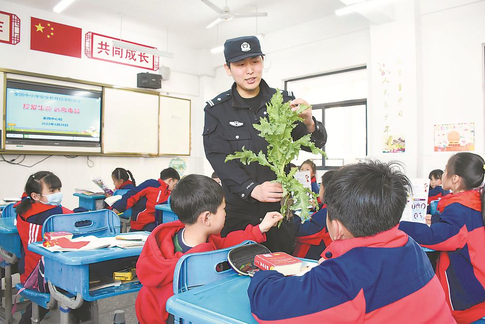 日前,含山县公安局林头派出所民警来到辖区东关初级中学,开展以“珍爱生命·远离毒品”为主题的禁毒宣传活动,提高学生防毒意识和识毒能力。通讯员 冯善军 摄