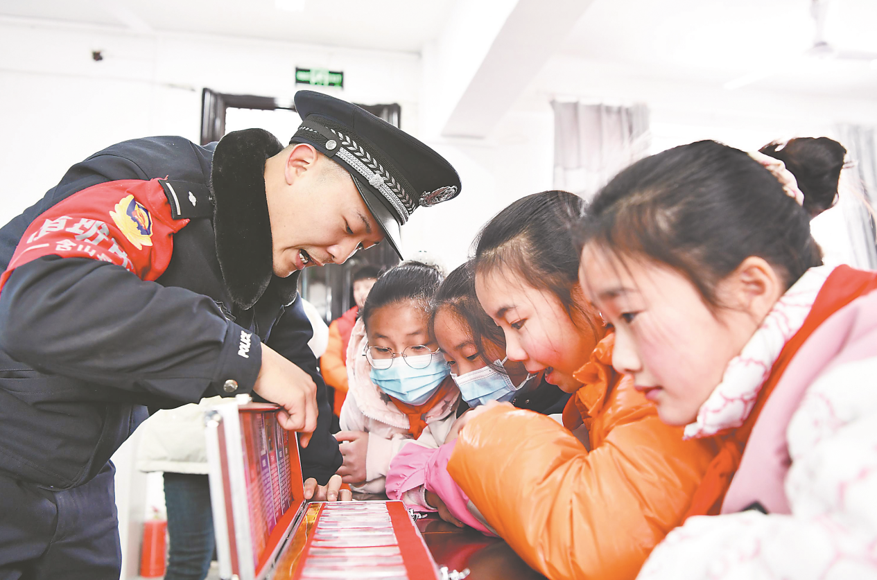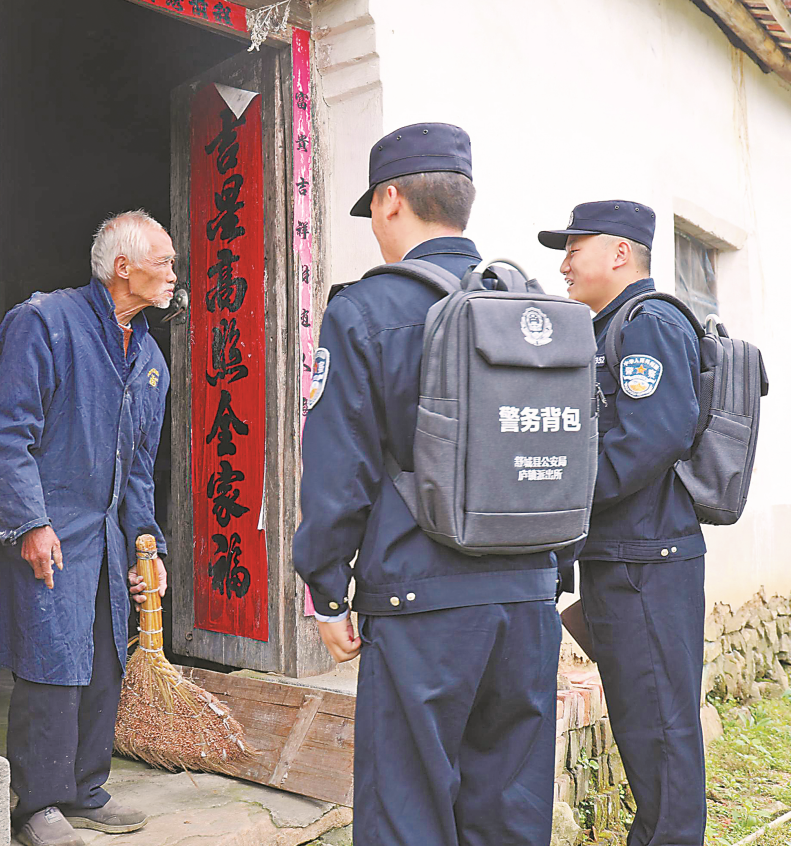 近年来,舒城县公安局庐镇派出所开展“背包警务”工作机制,将证件办理、调解纠纷、信息采集、安全防范、法治宣传等警务工作“装”进背包,进村入户,极大方便了偏远地区的群众。 (资料照片)通讯员 王可海 摄