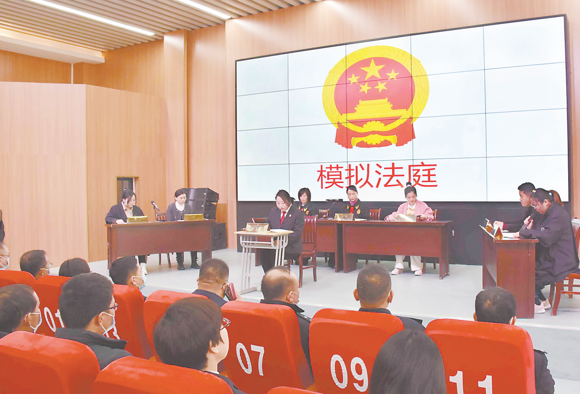 3月8日,肥西县花岗镇新时代文明实践所联合镇司法所、妇联等单位,运用涉家暴离婚纠纷案模拟法庭形式向社区群众讲解家暴行为的危害。记者 姚林 通讯员 马家贵 摄