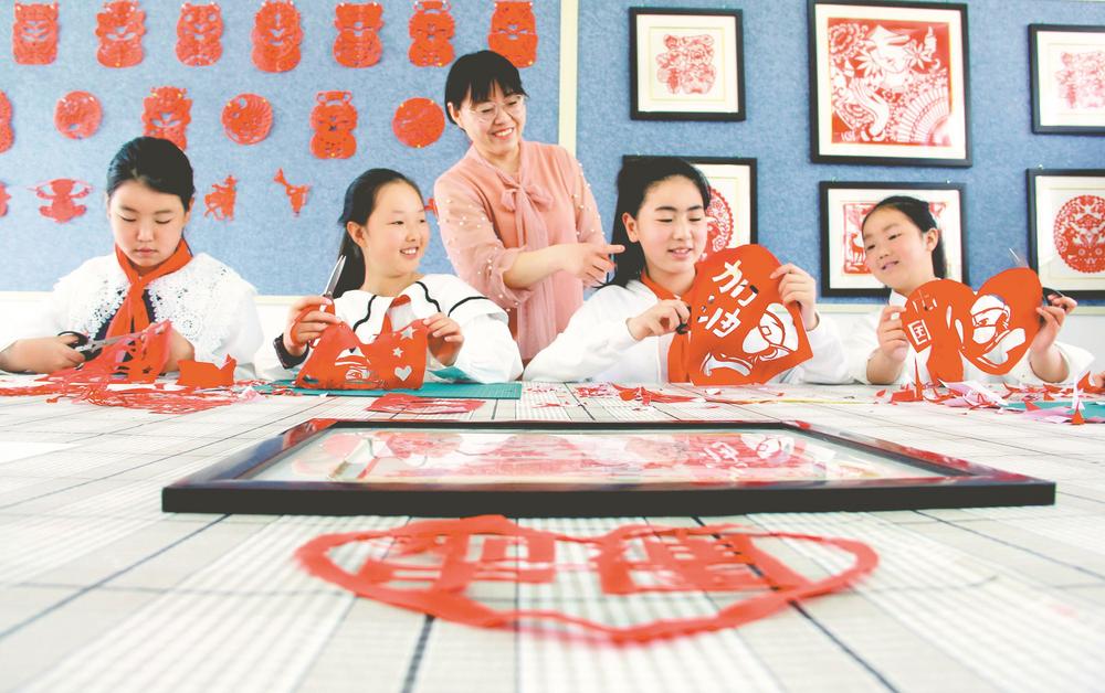 4月10日,淮北市黎苑小学学生在老师指导下进行抗疫题材剪纸创作。当日,该校组织剪纸兴趣班的学生围绕抗疫主题,用传统民间艺术歌颂奋战在抗疫一线的“最美逆行者”。