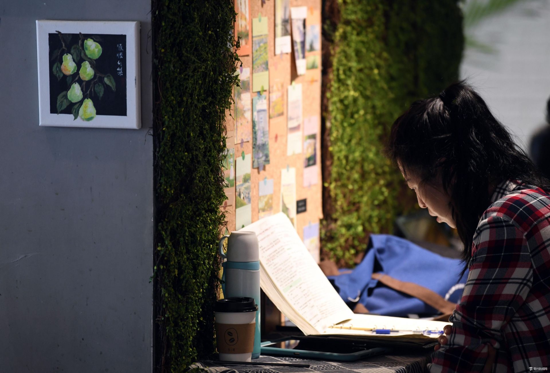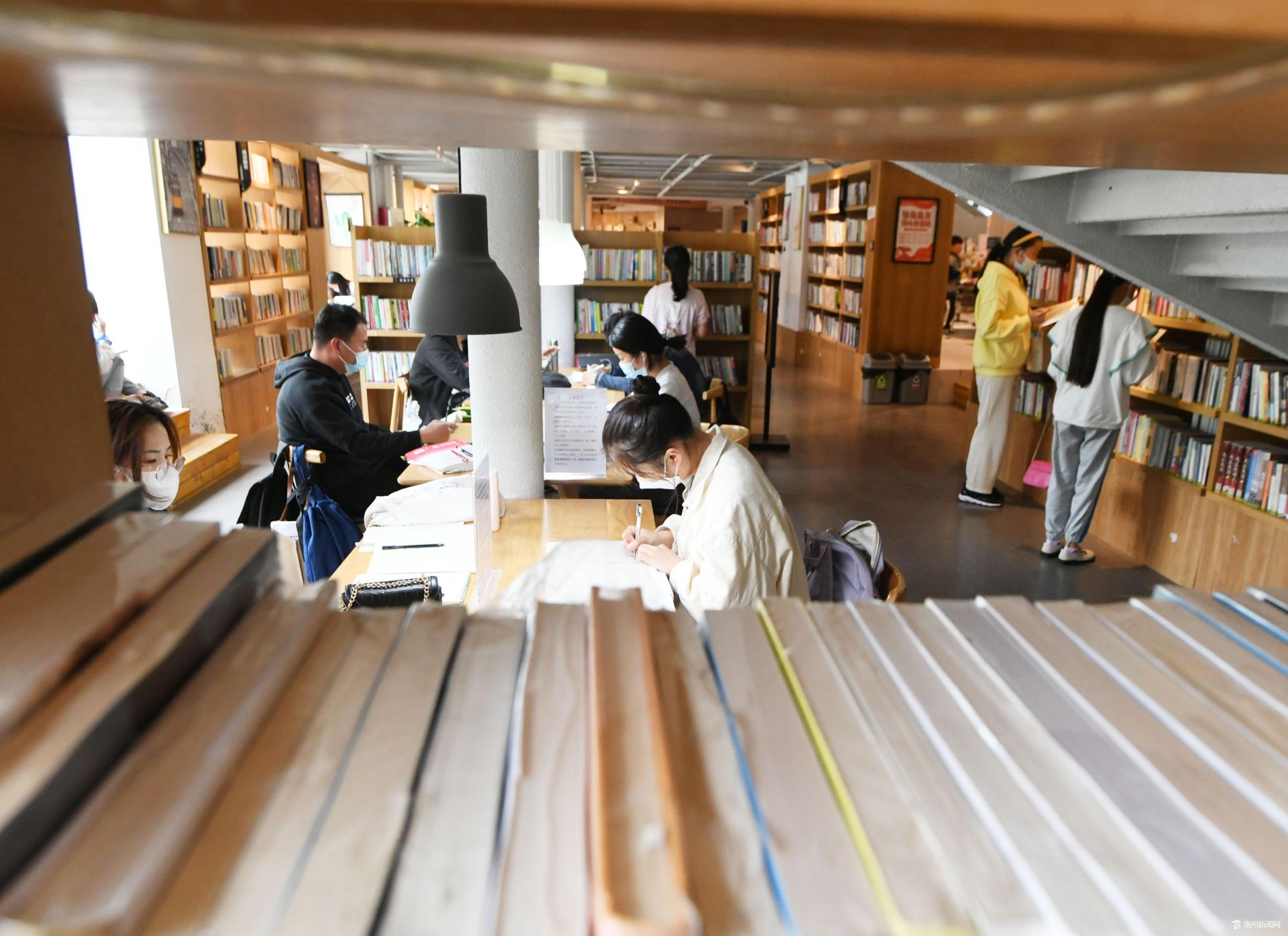 4月23日,在亳州市建安文化广场,市民正在之意书社阅读图书。当日,是“世界读书日”,不少市民走进图书馆、书店、农家书屋等场所,在安静宽敞的空间品味书香,享受读书的快乐。记者:张延林 摄