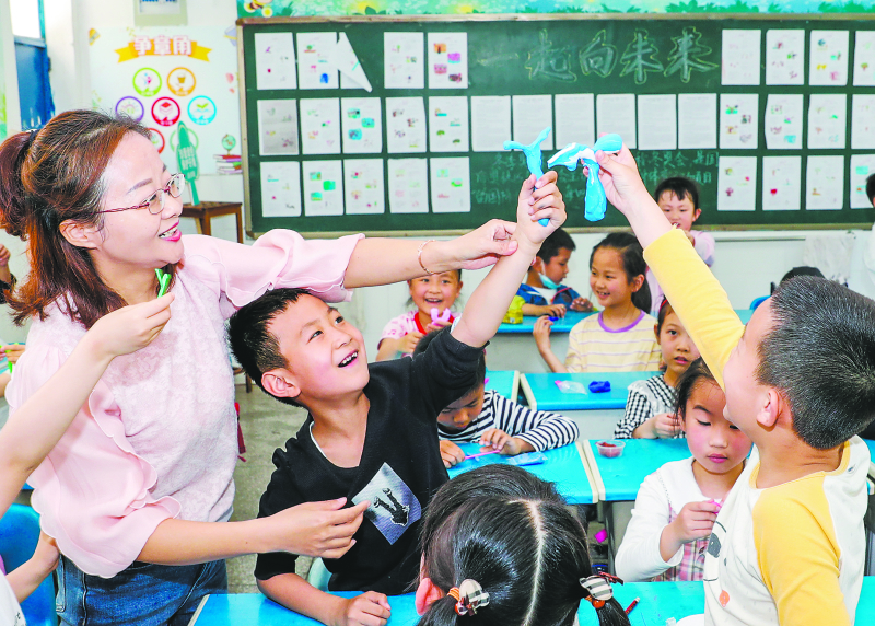 4月24日,铜陵市铜官区人民小学的教室里,外来务工人员子女在上课。铜陵市出台多项政策,在分班、教育资源分配、经费保障等方面,保障随迁人员子女享受同城待遇,全市随迁人员子女城镇义务教育覆盖率达100%。