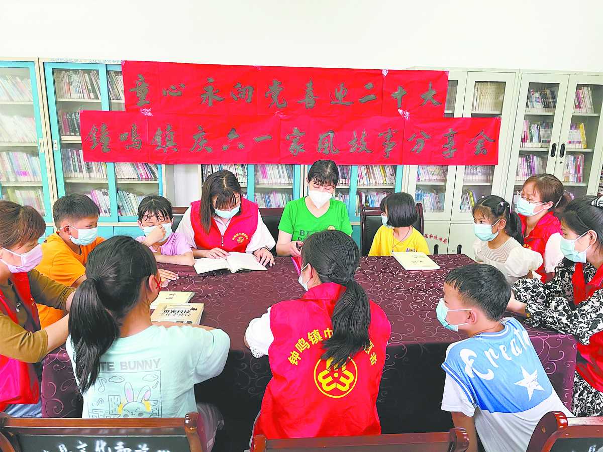 6月1日,铜陵市义安区钟鸣镇新时代文明实践所联合镇妇联在留守儿童活动室开展“童心永向党 喜迎二十大”家风故事分享会,旨在传承好家风,树美德,关心下一代健康快乐成长。通讯员 潘伟 汪婕 摄