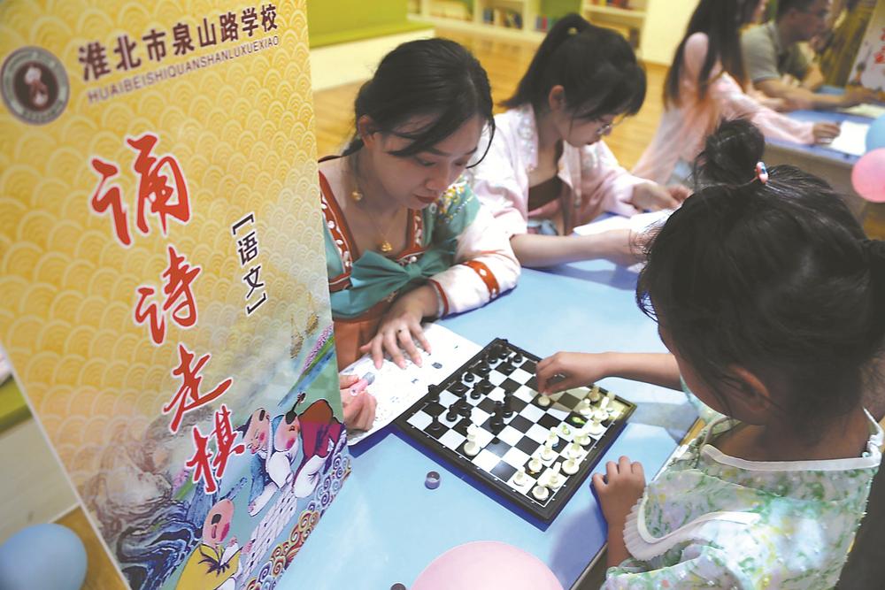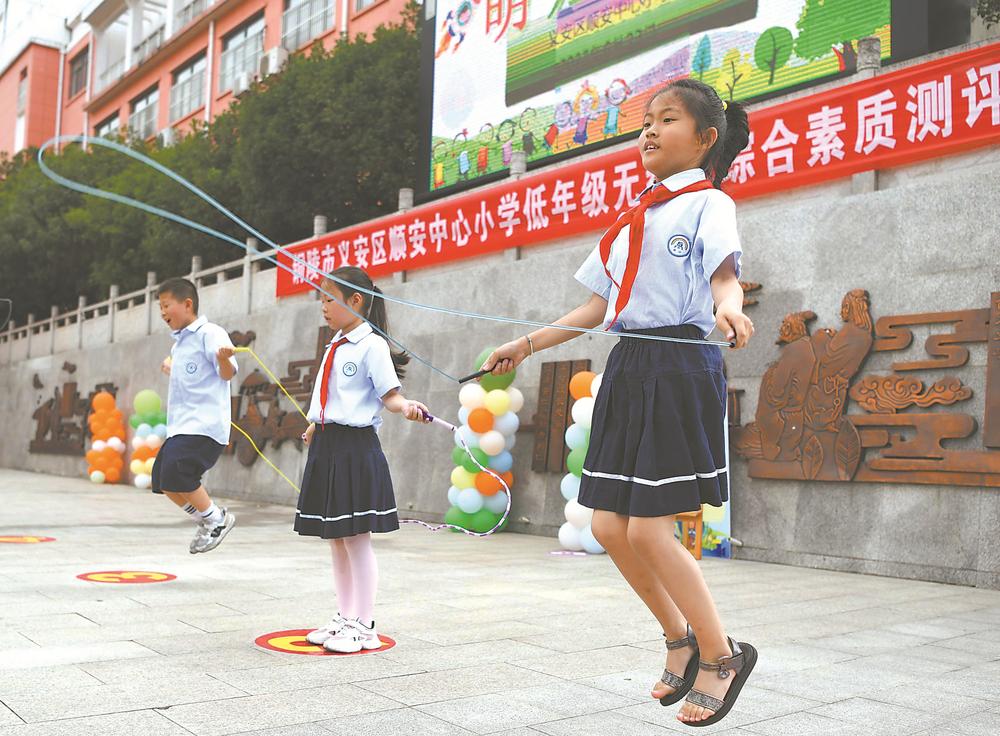 6月21日,在合肥市逍遥津小学金都华庭校区,学生参加期末趣味游戏闯关测试。全面落实“双减”政策,该校一二年级不再进行纸笔考试。 通讯员 葛传红 周倩倩 摄