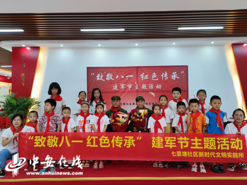 为进一步培养未成年人爱国意识,营造良好的爱国主义教育氛围,7月31日上午,合肥新站高新区七里塘社区新时代文明实践所举办“致敬八一红色传承”建军节主题活动。邀请两名老兵走进星火党群活动中心,为辖区少年儿童讲述红色故事。