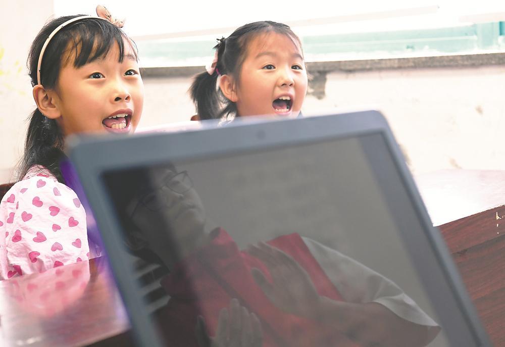 近日,合肥市新站区三十头社区暑期托管班的孩子们在练习唱歌。