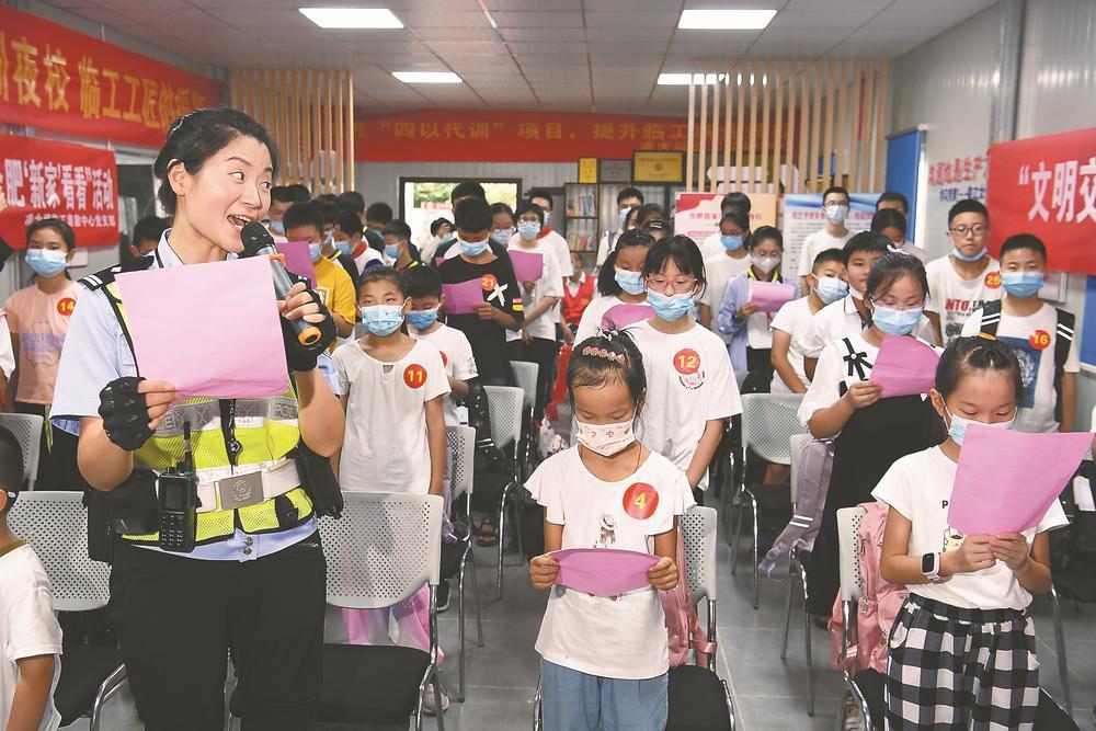 7月27日,一场名曰“孩子,带你来合肥‘新家’看看”的活动在合肥市包河区常青街道凌大塘临工集散中心举行。当日,包括程立波兄妹和爸妈在内的25组临工及孩子共同参加交通安全宣传教育讲座、参观合肥南站动车运用所、到合肥劳模工匠馆聆听劳模事迹、在蓝博教育科技有限公司体验机器人操作……凌大塘临工集散中心所在街道、社区妇联以及中心党支部已连续多年举办这项活动,组织来肥“度假”的外乡孩子学习庐州礼仪文化、手工艺制作,参观安徽创新馆、科技馆等场所,领略省会合肥的城市风光和发展成就,“小候鸟”的暑假变得充实而有意义。