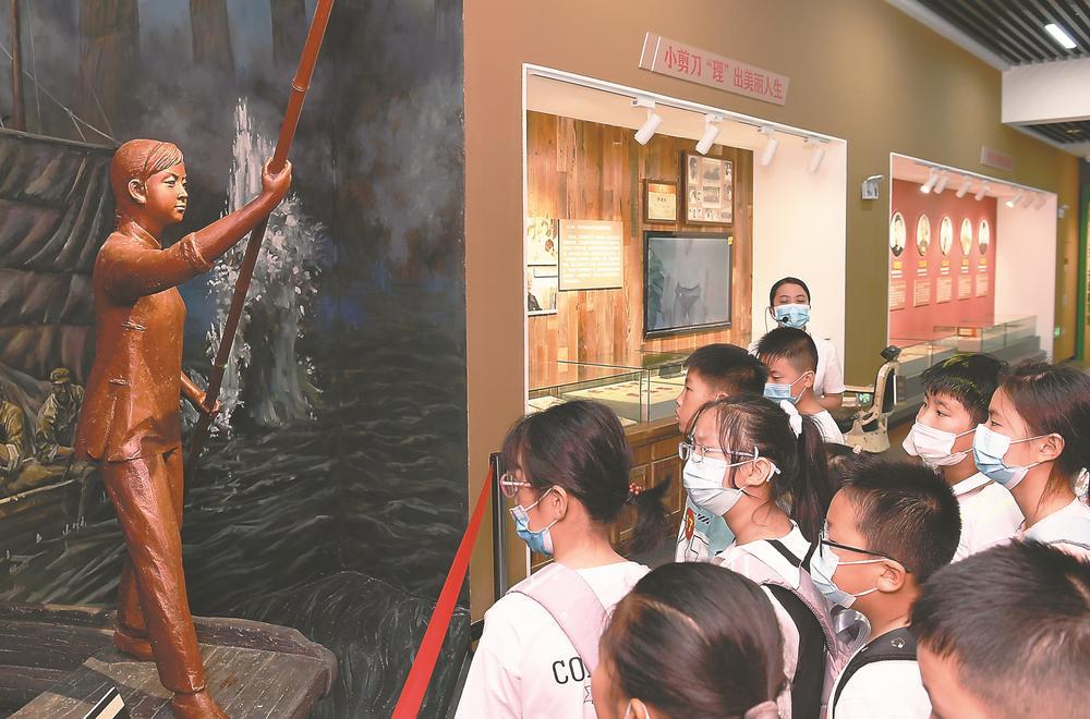 7月27日,孩子们在合肥劳模工匠馆聆听马毛姐的故事。