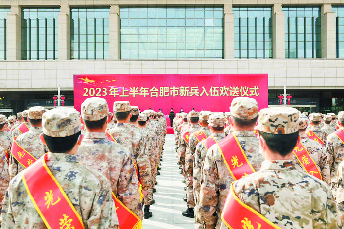 3月16日上午,2023年上半年合肥市新兵入伍欢送仪式在合肥南站北广场举行。