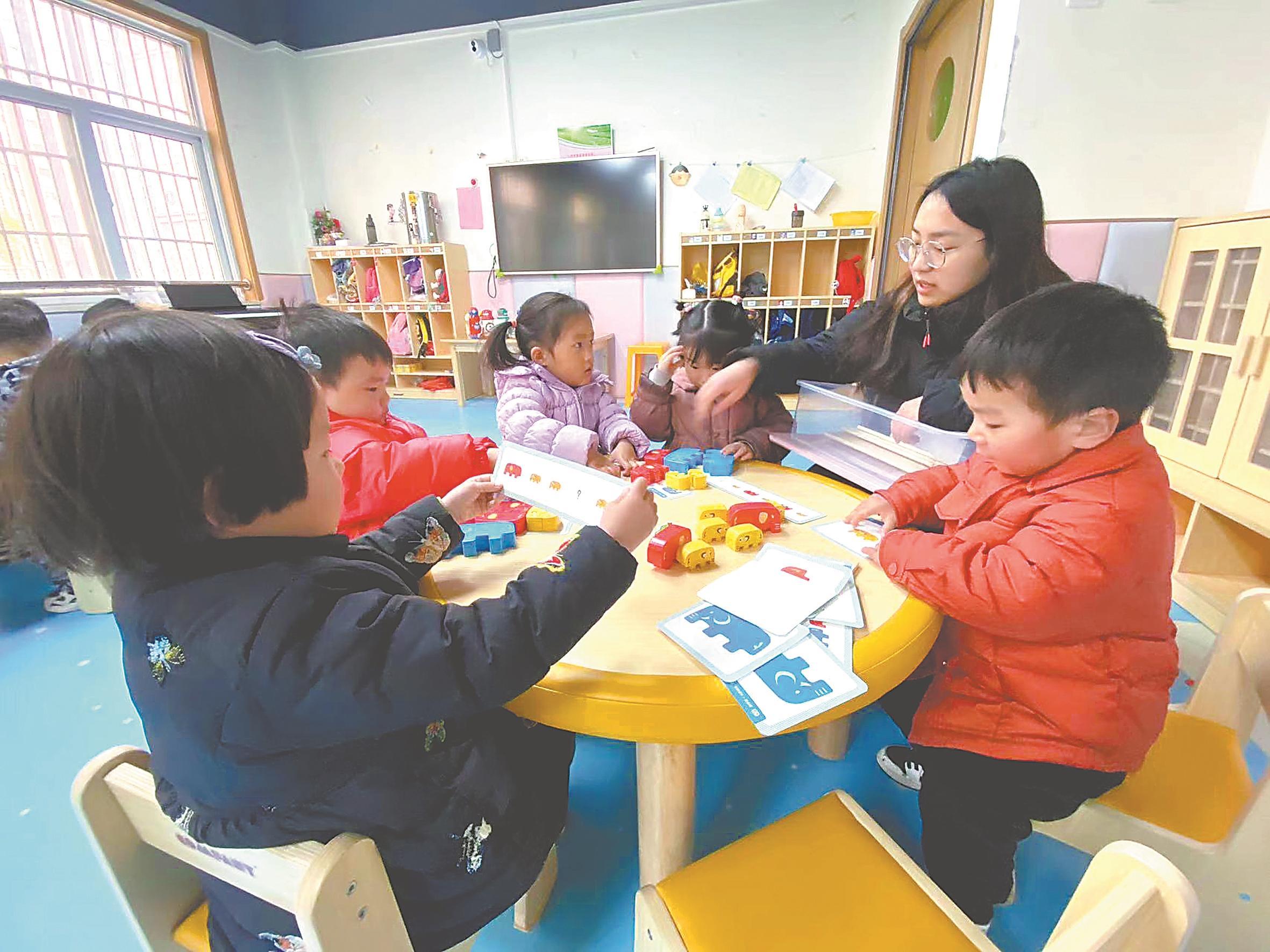 宿州市埇桥区直属幼儿园托幼班老师正陪伴孩子们做游戏。(资料图片)