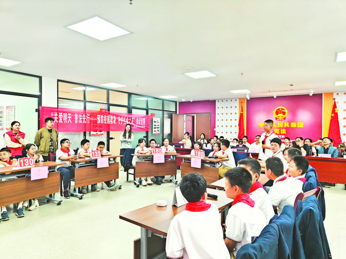 昨天,蜀山区安居苑社区在辖区学校开展“关爱明天 普法先行——”知识竞赛。比赛中,小选手们利用自身掌握的预防校园欺凌知识及相关法律法规知识,沉着应答。