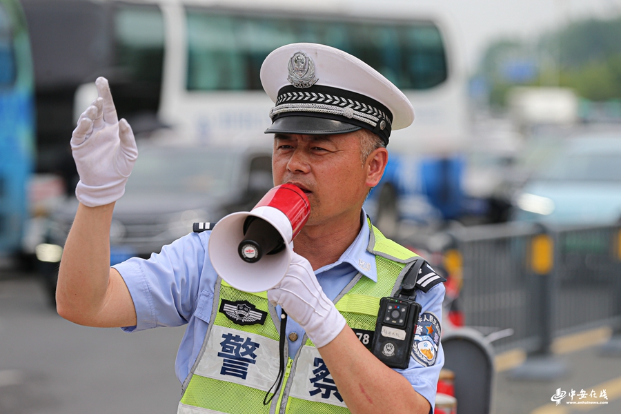 考生们走出考场,执勤交警高温下坚守一线疏导交通