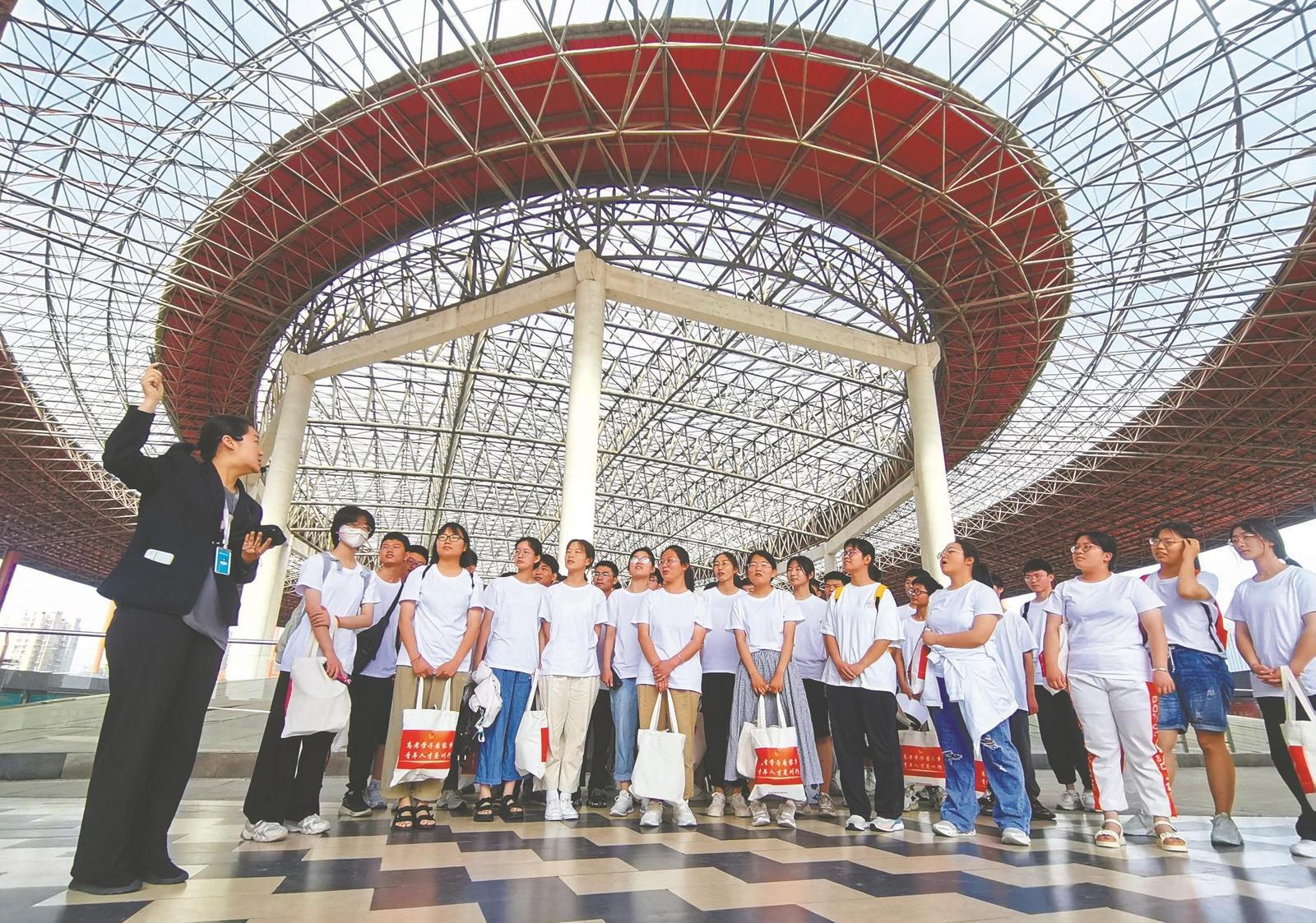 日前,我省“高考学子看家乡 青年人才安徽行”活动启动,近百名高考学子和青年大学生代表实地参观了解家乡发展变化。图为青年人才和高考学子代表在参观中国亳州中药材专业市场。
