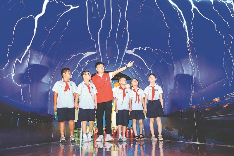 7月28日,合肥市庐阳区林店街道景湾社区组织辖区小学生走进合肥市气象馆,学习科普知识,体验科普游戏,感受科技的魅力。 本报通讯员 赵 明 摄