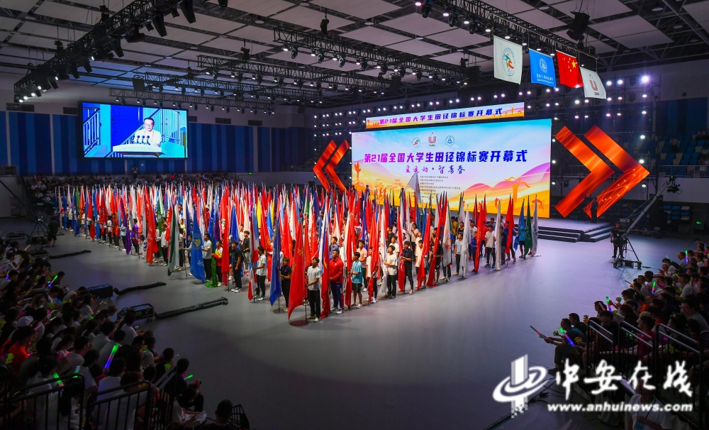 爱运动,智青春!8月9日晚,第21届全国大学生田径锦标赛在安徽职业技术学院隆重开幕。这是该项赛事首次由安徽省高校承办,也是全国高职院校首次承办,更是继第31届世界大学生夏季运动会之后的又一次全国性体育盛会。390所高校4800余名运动员、教练员从全国各地奔赴而来,参赛高校及人数均创历史之最。安徽省人民政府副省长任清华出席开幕式并宣布本届大赛开幕。