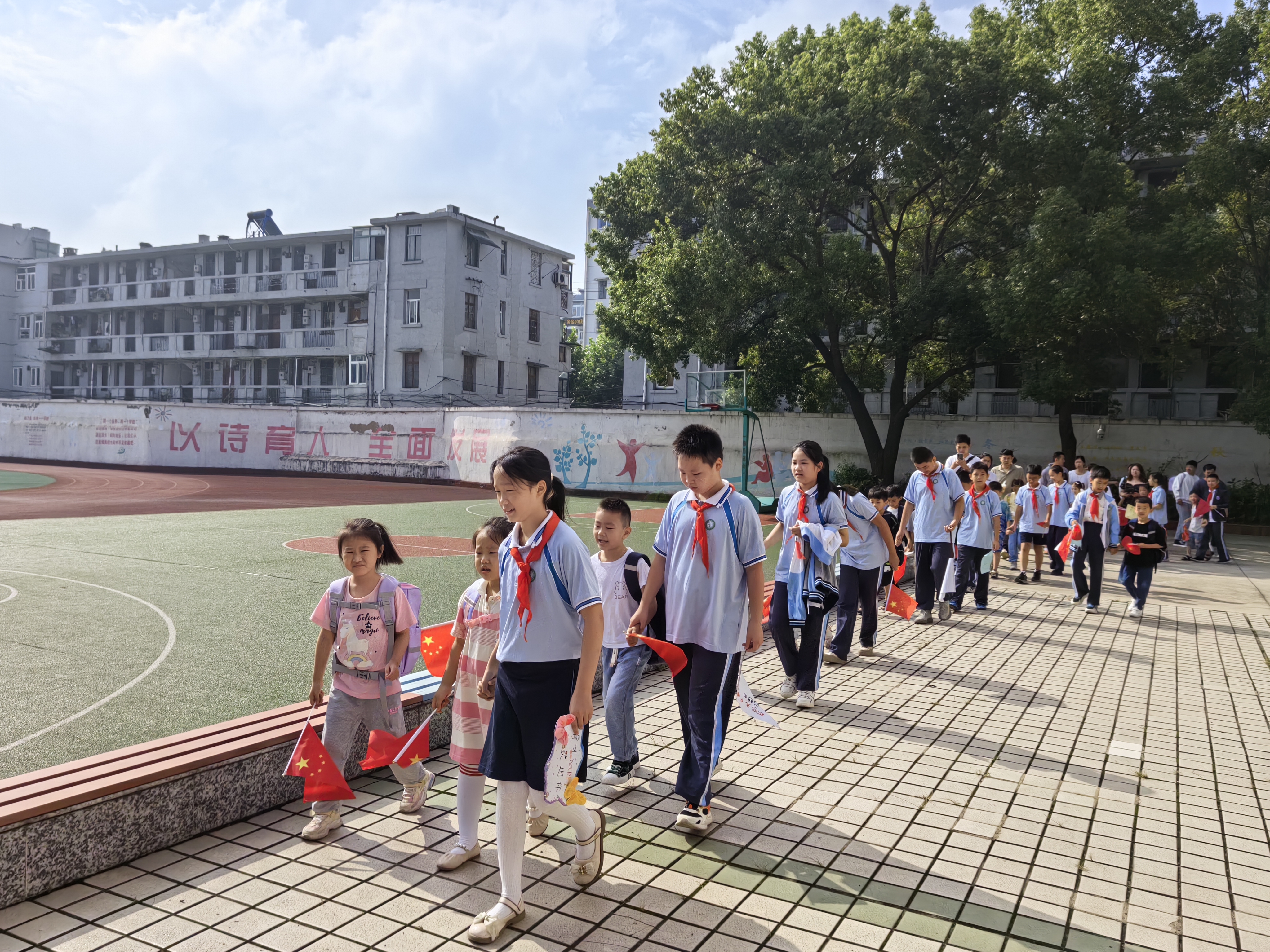 9月1日,合肥屯溪路小学滨湖校区以“强国未来 奋斗有我”为主题举行新学期开学典礼。