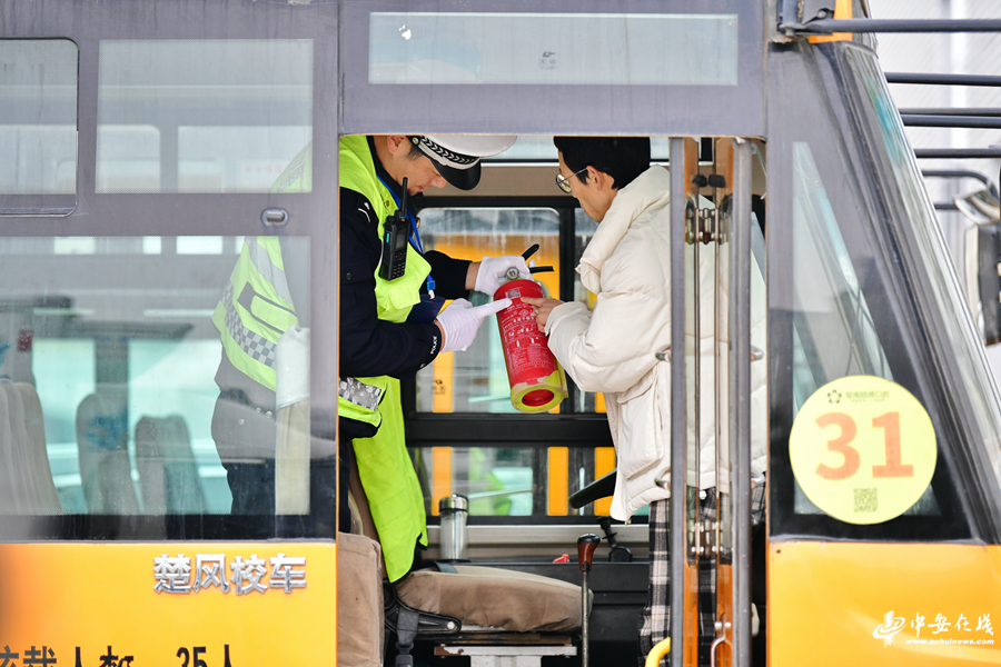 中安在线、中安新闻客户端讯 2月19日,安徽省阜阳市阜南县交警在童安校车服务有限公司内检查校车安全设施。春季开学临近,阜南县公安局交管大队组织民警对全县各中小学校校车的轮胎、灯光、灭火器和安全带是否完好等关键部件进行检查,确保校车在行驶过程中的安全性,保障学生上下学乘车安全。(通讯员 吕乃明 记者 段玉)